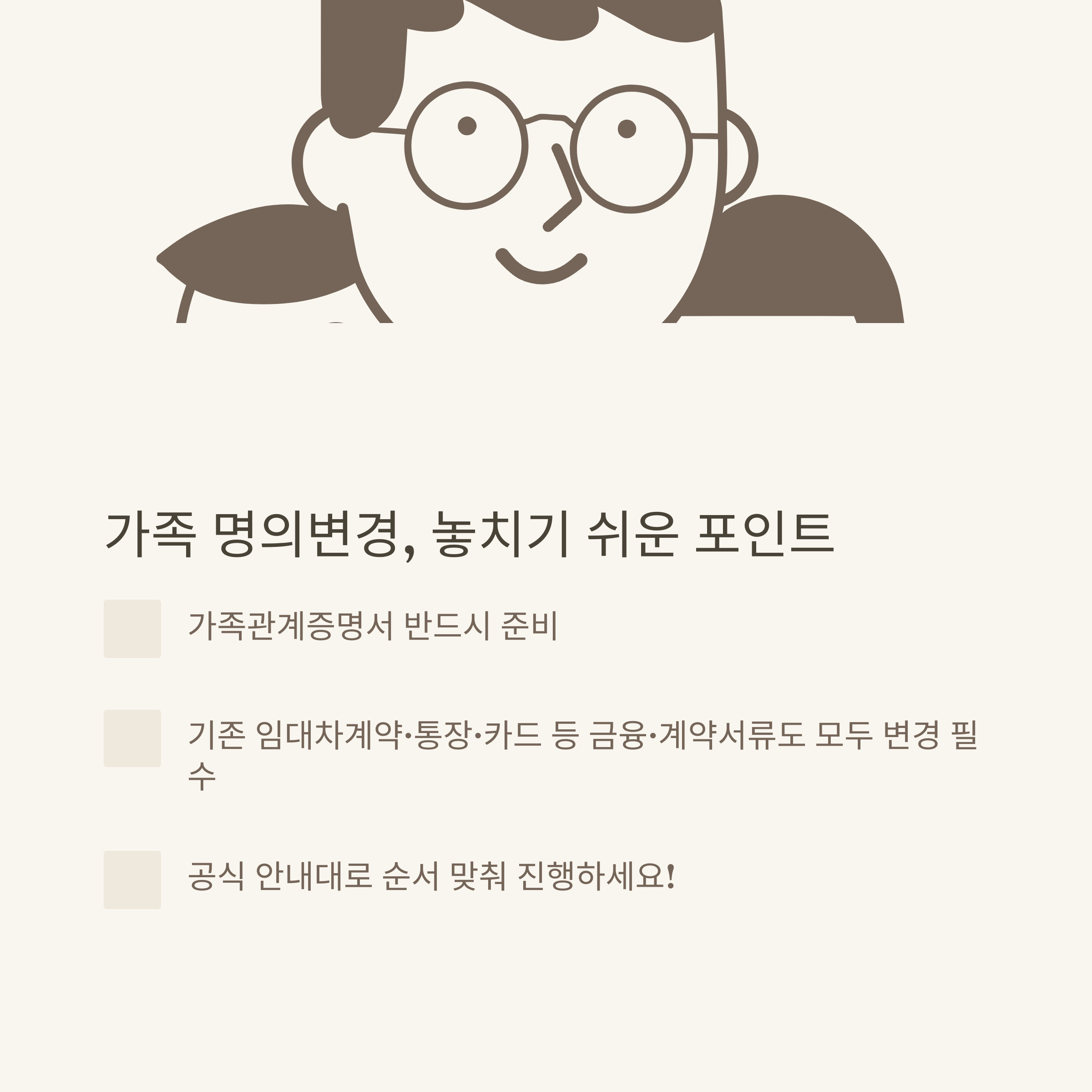 - 공동명의 계좌나 사업용 카드도 변경 필수