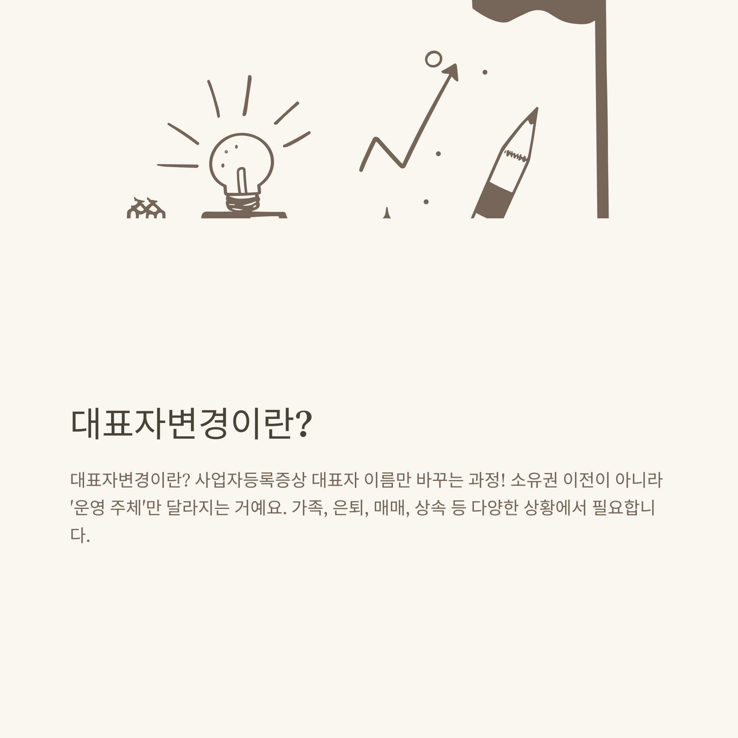솔직히 저는 ‘개인사업자 대표자변경’이라는 용어 자체가 참 어렵게 느껴졌습니다. 처음엔 단순 명의만 바꾸는 거라 생각했는데, 막상 직접 해보니 생각보다 복잡하고 세세하게 신경 써야 할 부분이 많았습니다. 대표자변경은 사업자등록증상 대표자를 기존 대표(예: 가족, 배우자 등)에서 새로운 사람으로 변경하는 과정을 말합니다.
