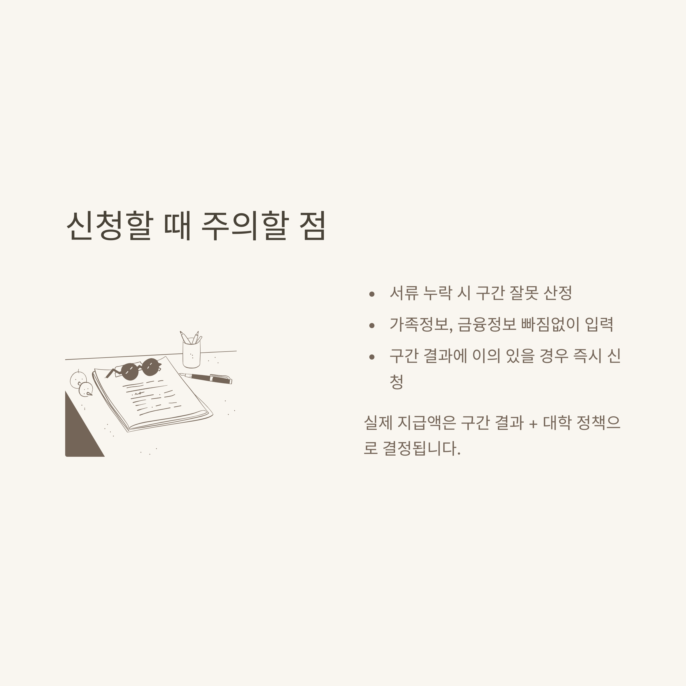 신청부터 지급까지 실제 경험을 기준으로 안내드리면, 먼저 소득구간 산정 결과가 나온 뒤 장학금 금액이 확정됩니다. 저도 처음엔 ‘신청만 하면 다 주는 줄’ 알았는데, 구간 결과와 학기별 한도에 따라 지급액이 달라지더라고요.