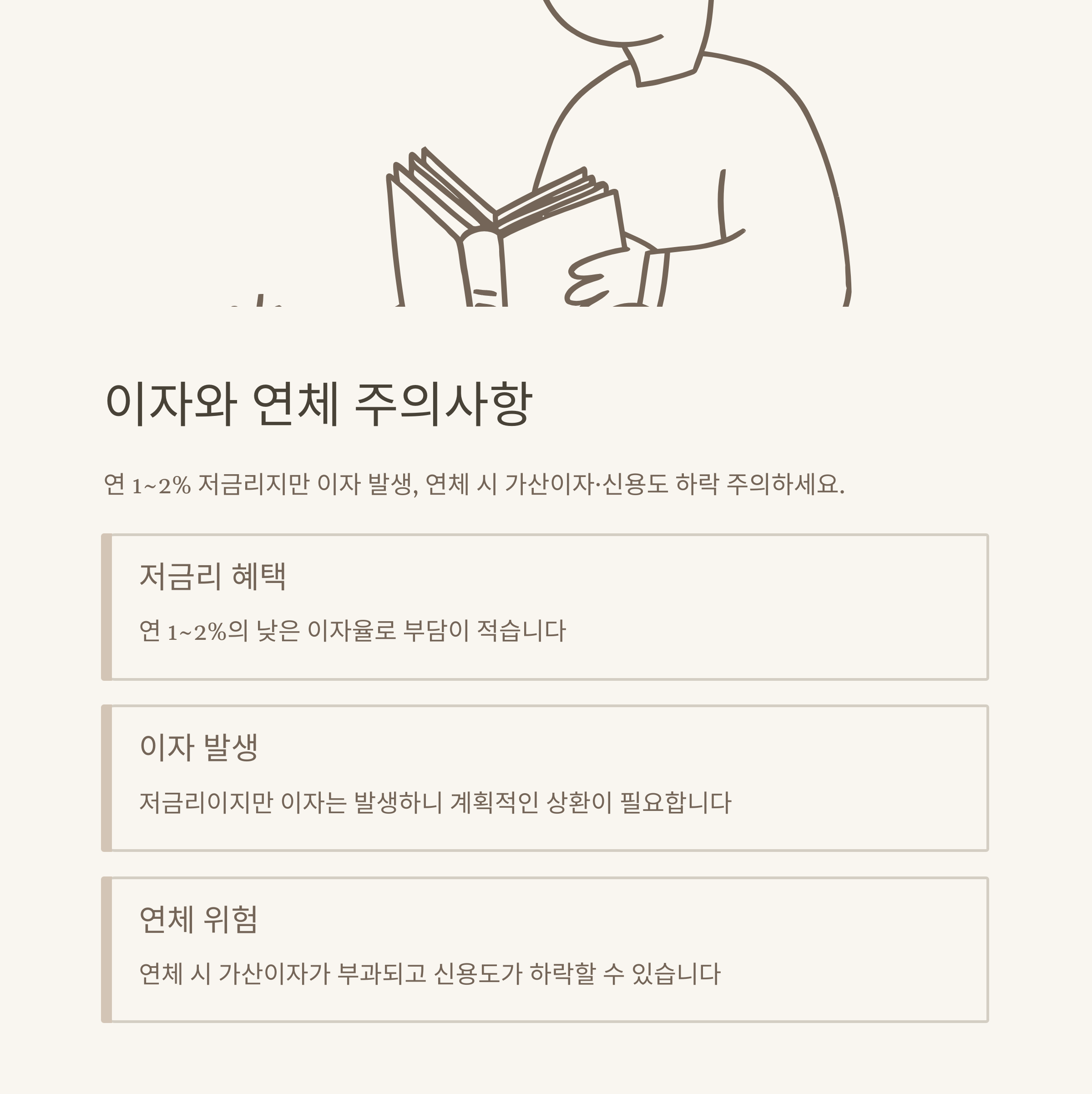 | 이자율 | 연 1~2% 내외(변동) | 연체 시 가산이자 |