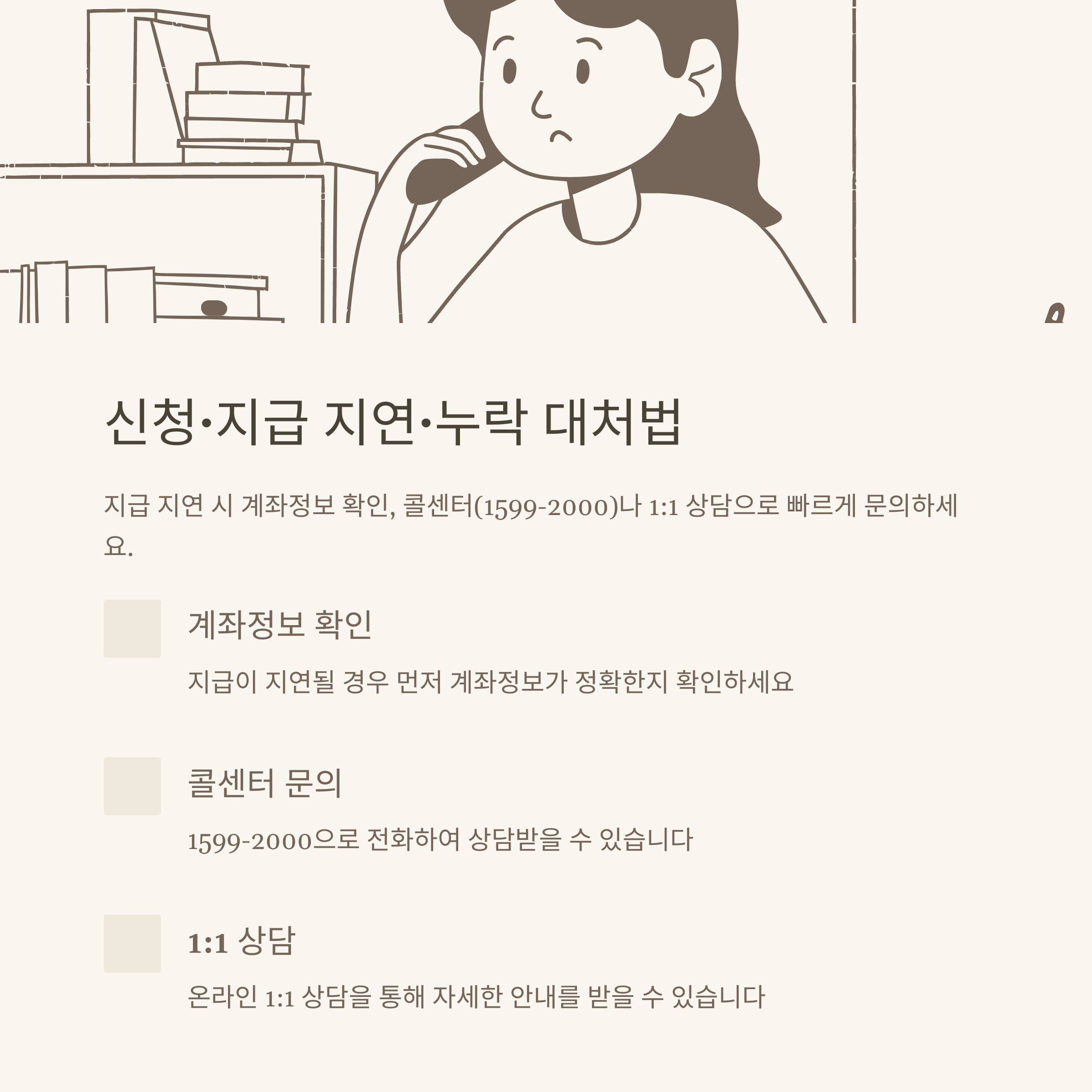 생활비대출 신청·지급이 지연되거나 누락될 때는 실제로 저도 겪었던 일이라 조금은 익숙합니다. 시스템 접속 폭주, 계좌 입력 오류, 학적변동(휴학, 제적 등), 서류 미비 등이 주된 원인인데, 이런 상황에서는 공식 콜센터(1599-2000)나 홈페이지 1:1 상담을 꼭 이용해야 해요.