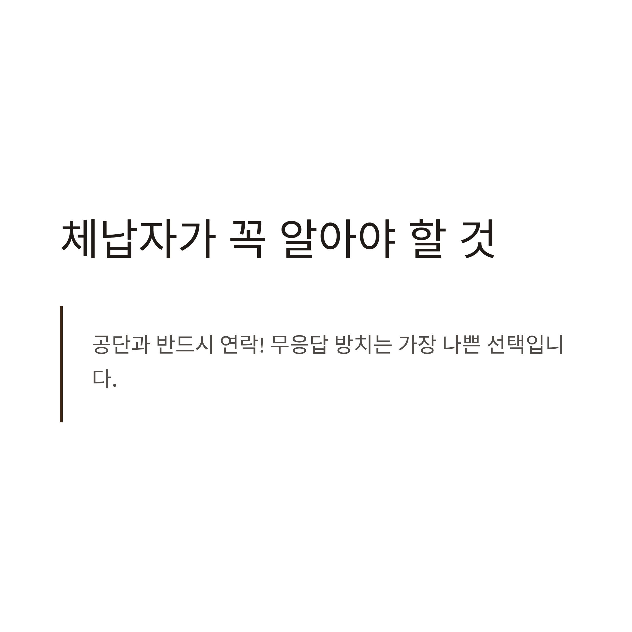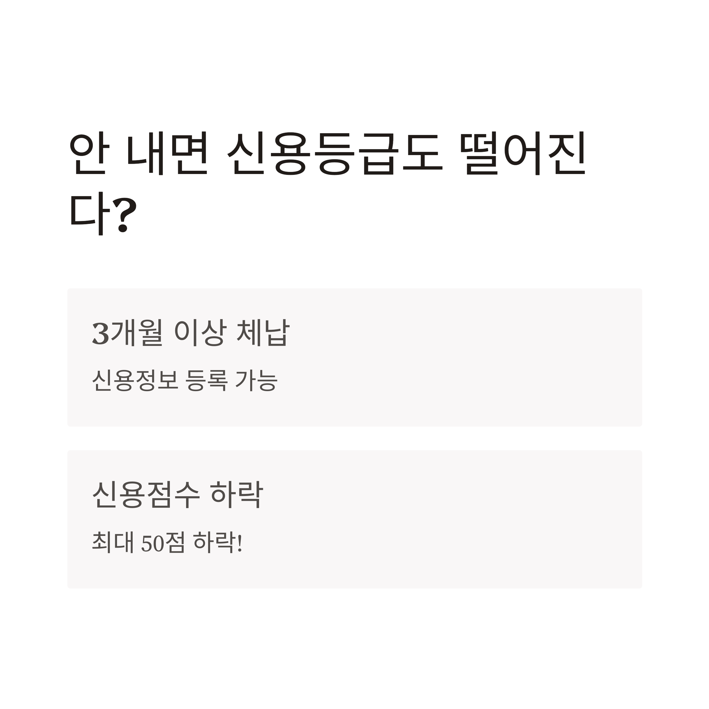 | 신용 영향 | 3개월 이상 체납 시 신용정보 등록 가능 |