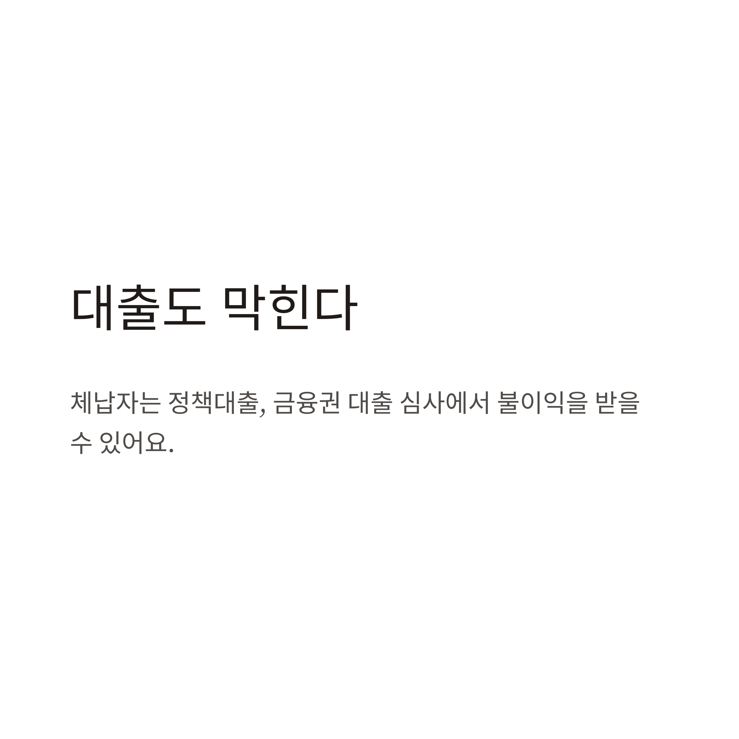 일반 금융권 대출도 신용정보 등록 여부에 따라 승인 불가가 될 수 있으니, 대출 계획이 있다면 체납은 피하는 게 최선입니다.