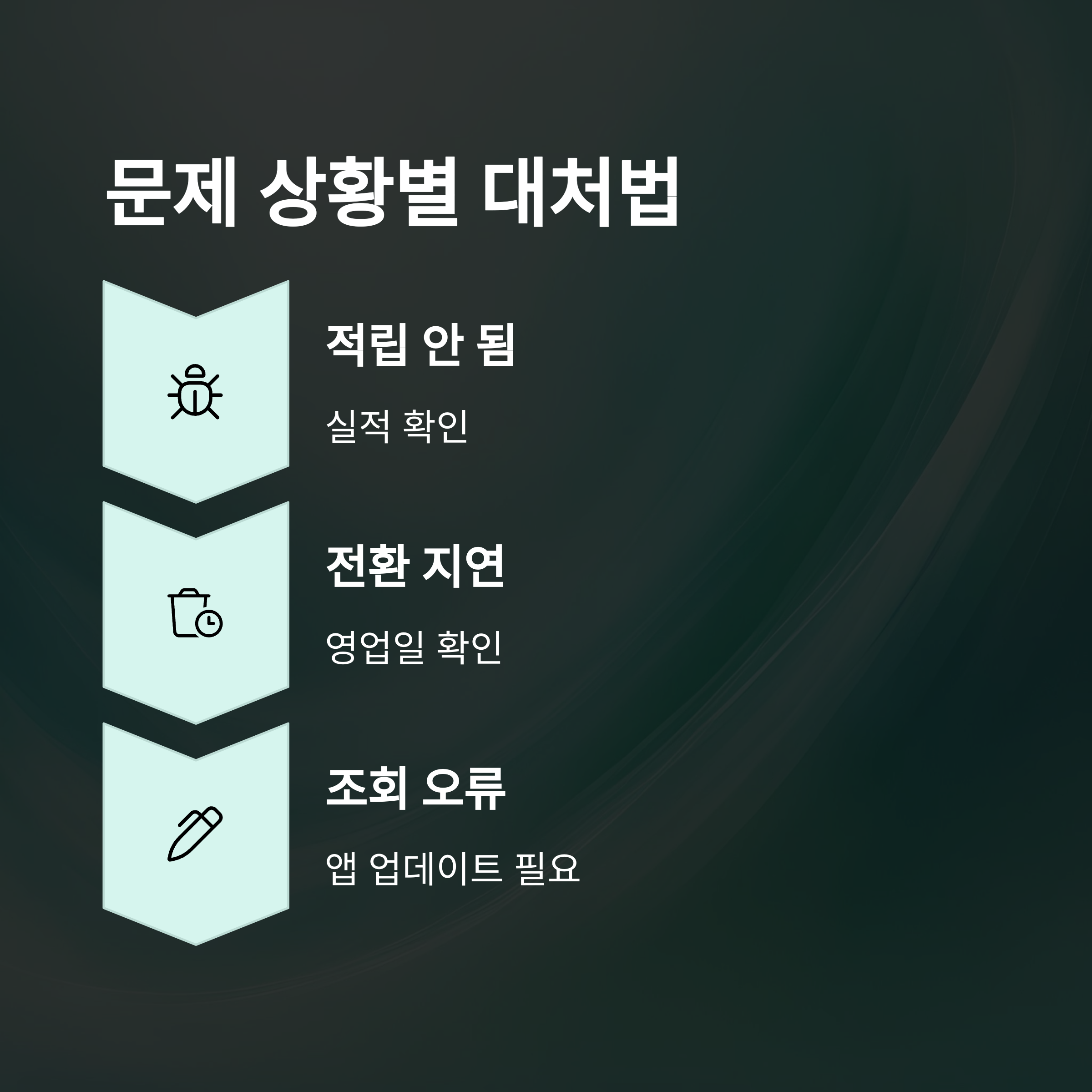 | 전환 지연 | 영업일 지연 또는 계좌 문제 | 다음 영업일 재확인 또는 문의 |