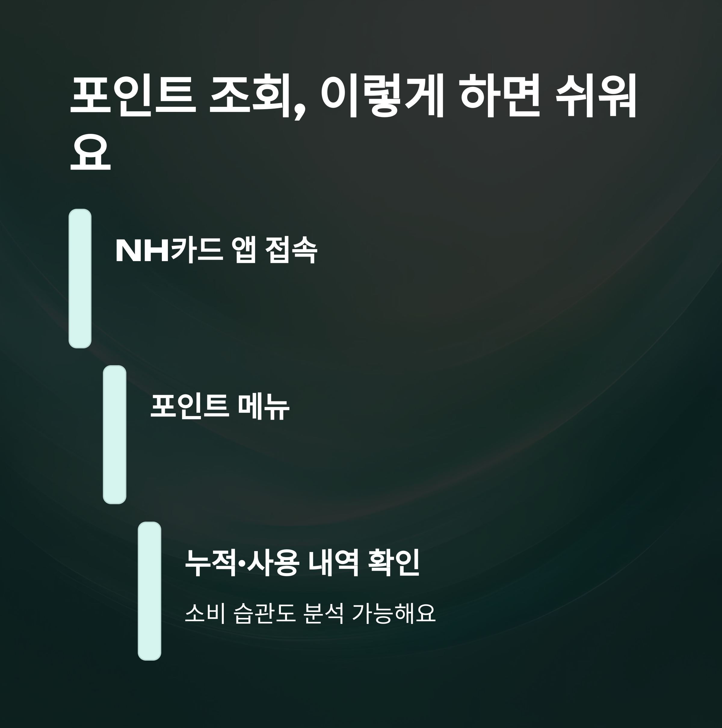 - NH카드/농협은행 앱 → 포인트 메뉴 선택 → 누적·사용 내역 확인