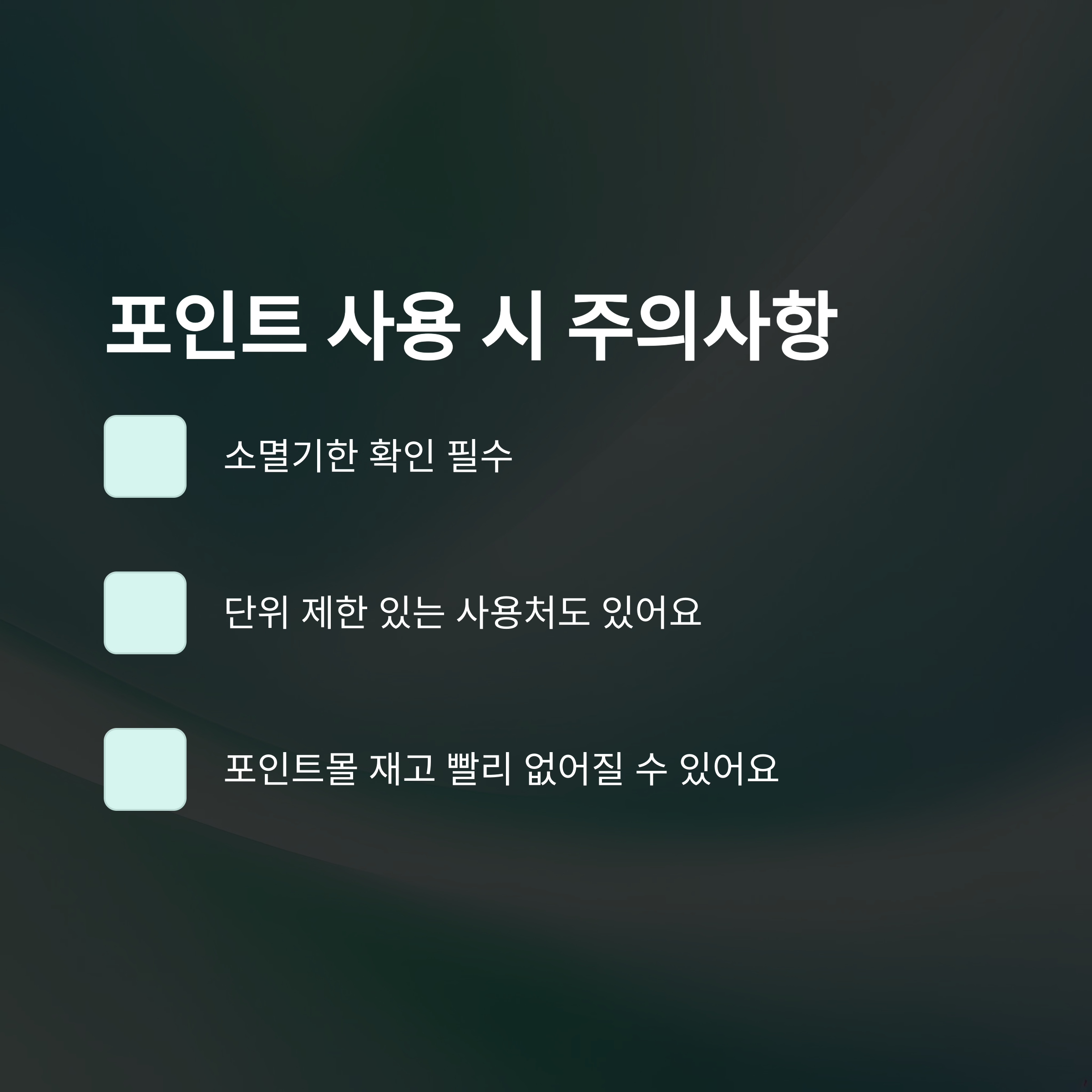 - 포인트 소멸기한 확인 필수 — 보통 5년 또는 포인트 발생월 기준