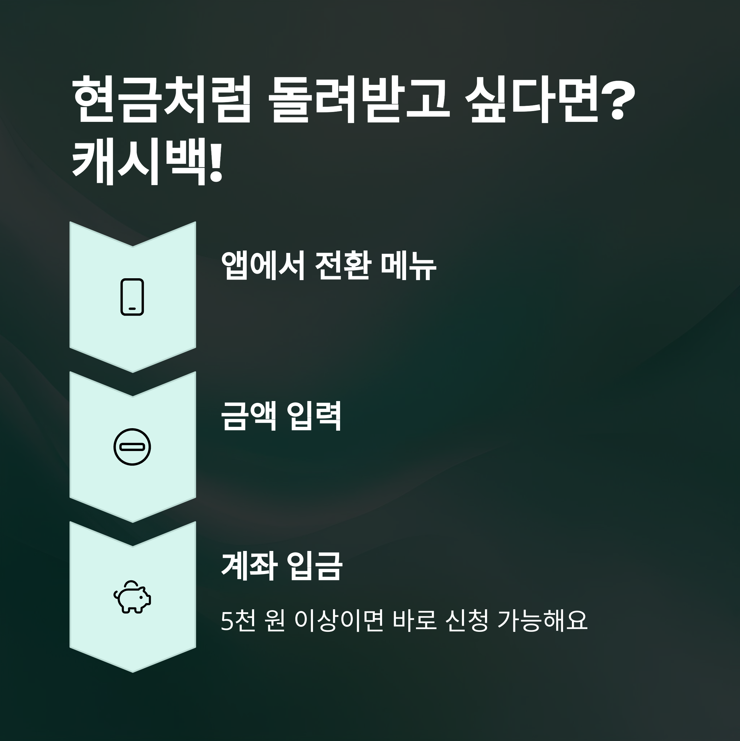 - 앱 → 포인트 → 캐시백/전환 메뉴 이동