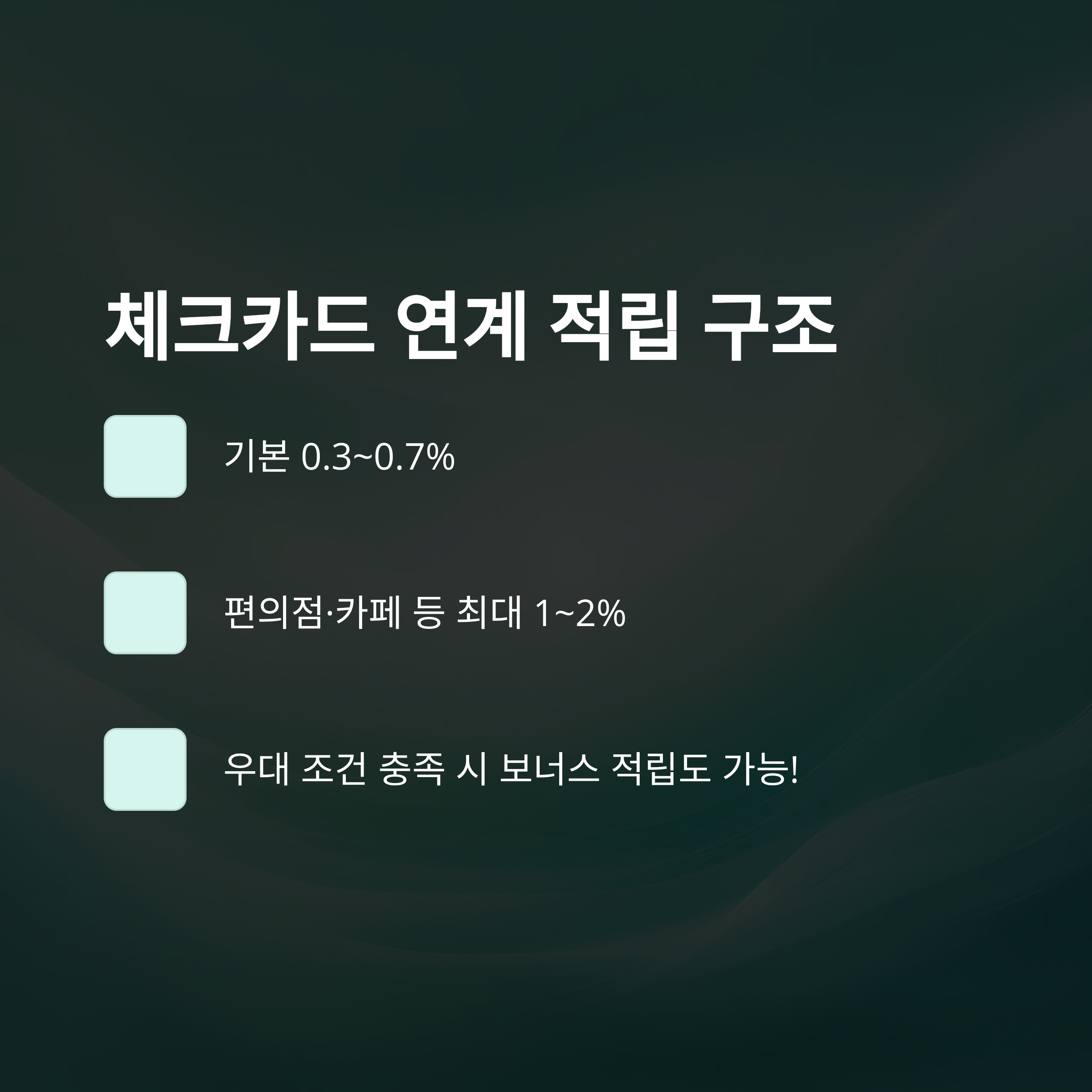 - 중복 적립: 체크카드는 본인계좌 우대 조건 만족 시 보너스 적립 가능