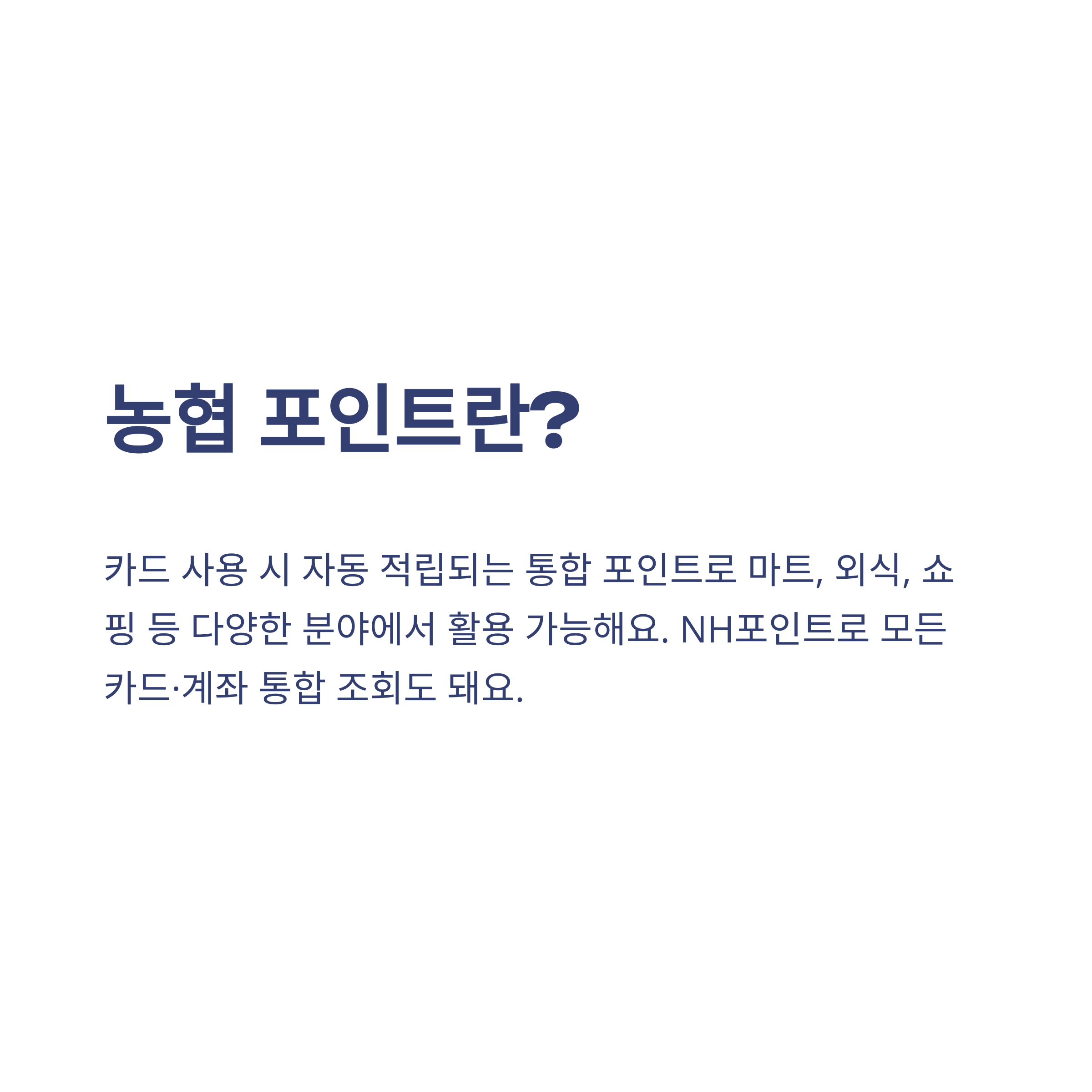 - 포인트는 NH통합포인트로 분류돼 모든 카드·계좌 간 통합 조회 가능