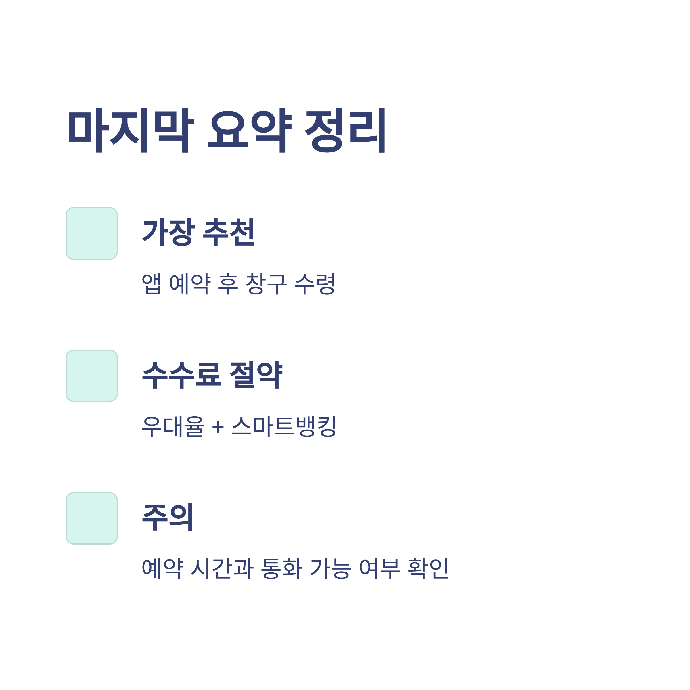 | 추천 방법 | 앱 → 예약 → 창구 수령 |