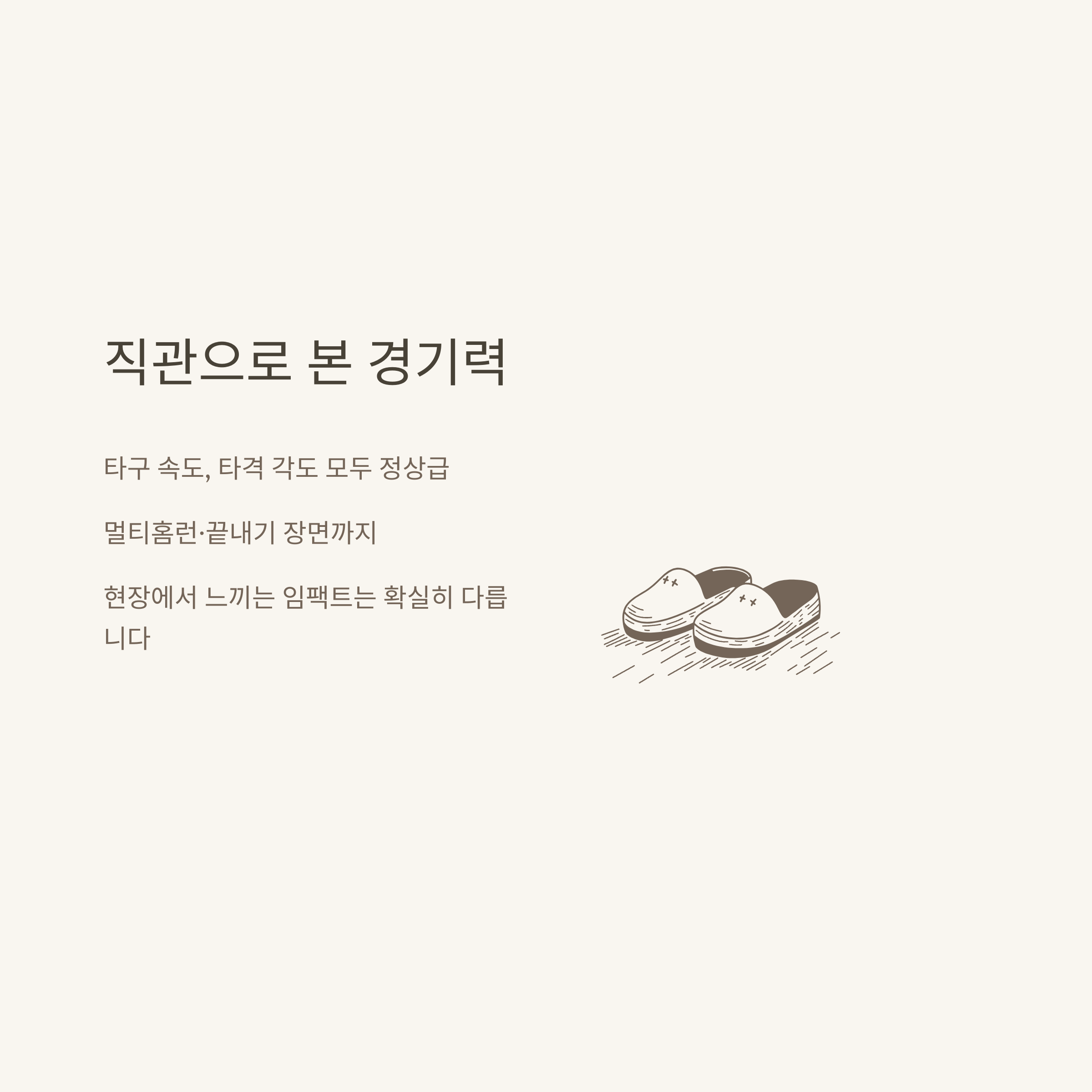 - 좌타/좌투(강한 파워와 밀어치기 장점)