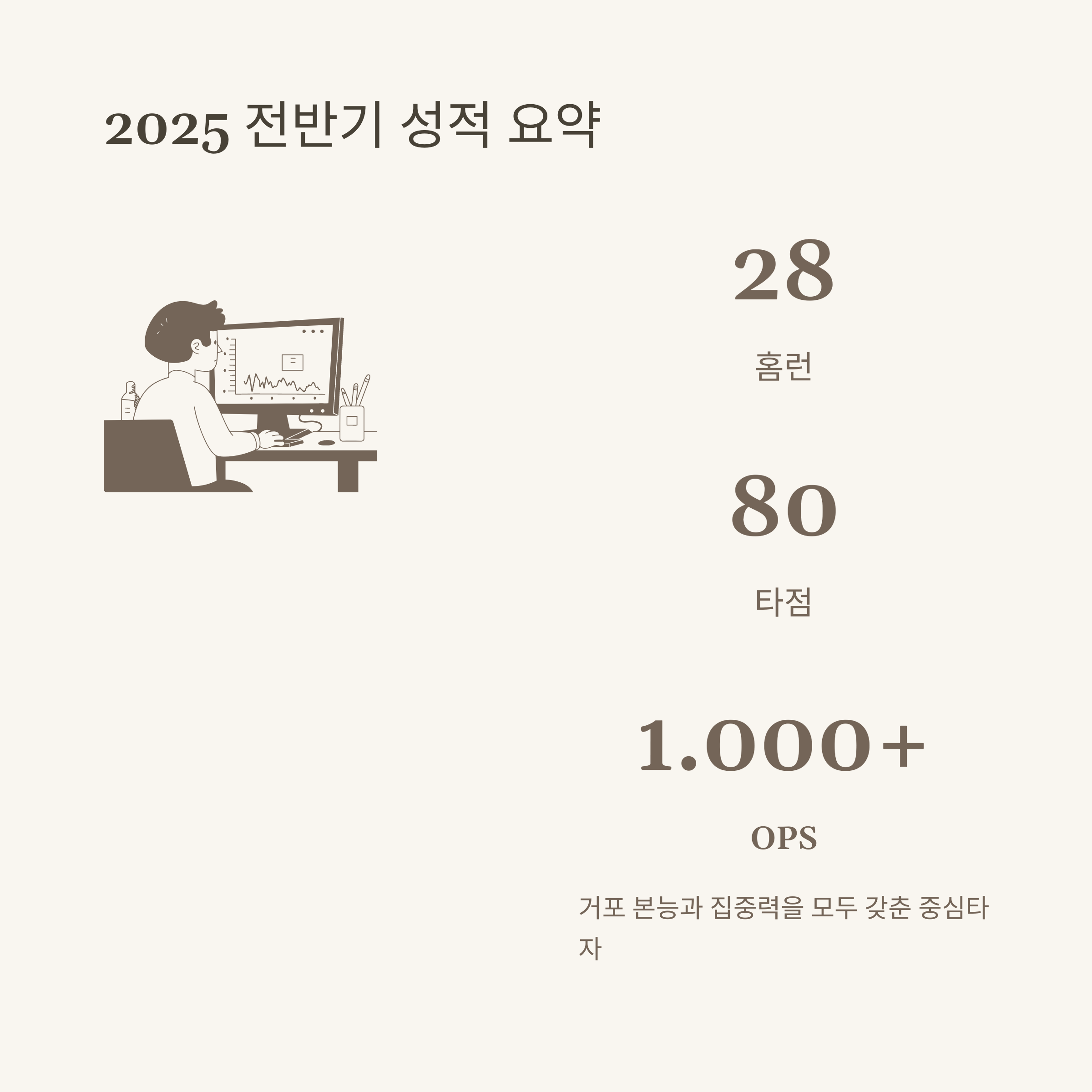 | 2025 전반기 성적 | 28홈런, 80타점, OPS 1.000 이상 |