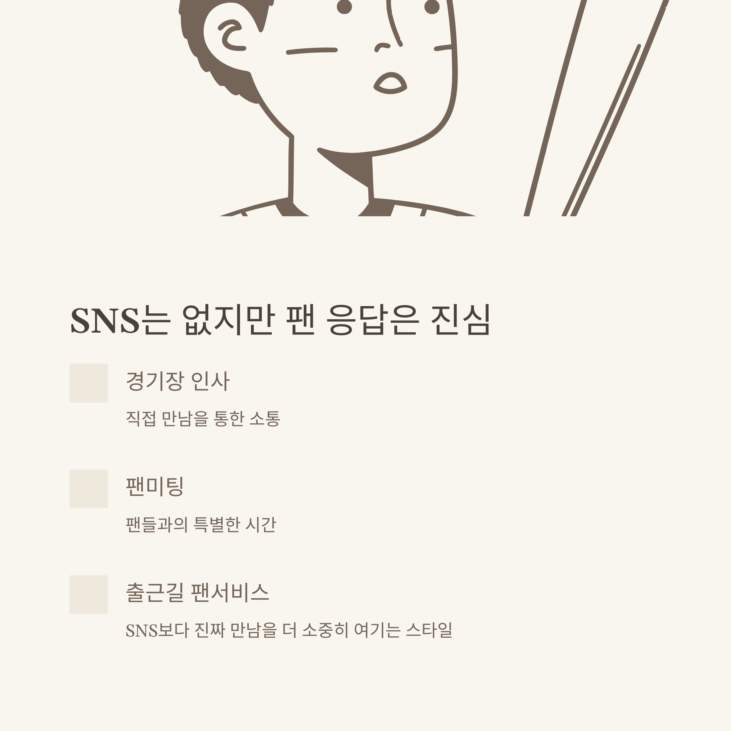 진정성 있는 팬 응대 본업 집중형 스타일 |