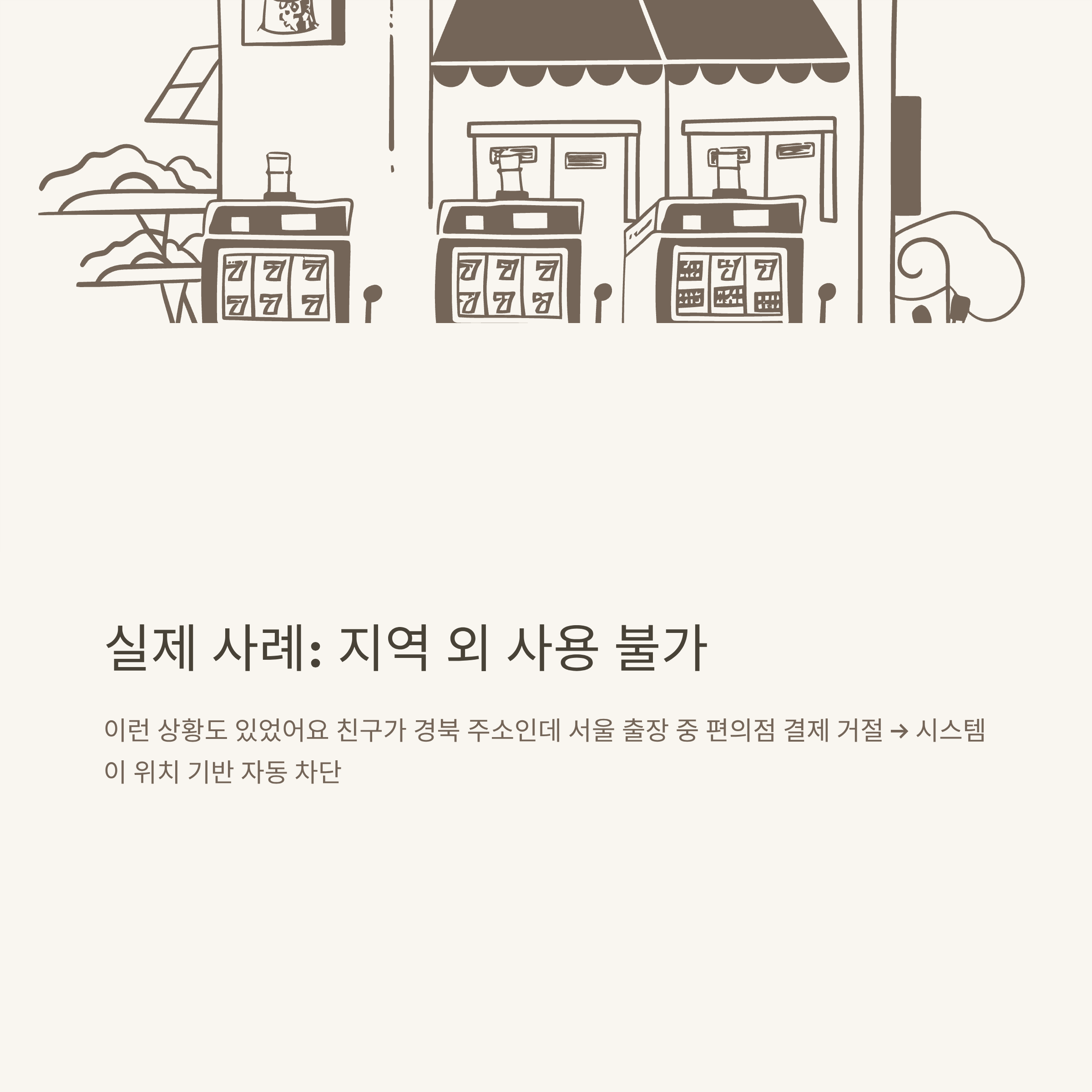 가끔 “휴가철인데 여행지에서도 쓸 수 있지 않을까?” 착각하는 경우가 많은데, 제가 직접 문의한 카드사 상담원도 “주소지 기준 이외 지역에서는 일절 사용 승인이 나지 않는다”고 안내하더라고요.