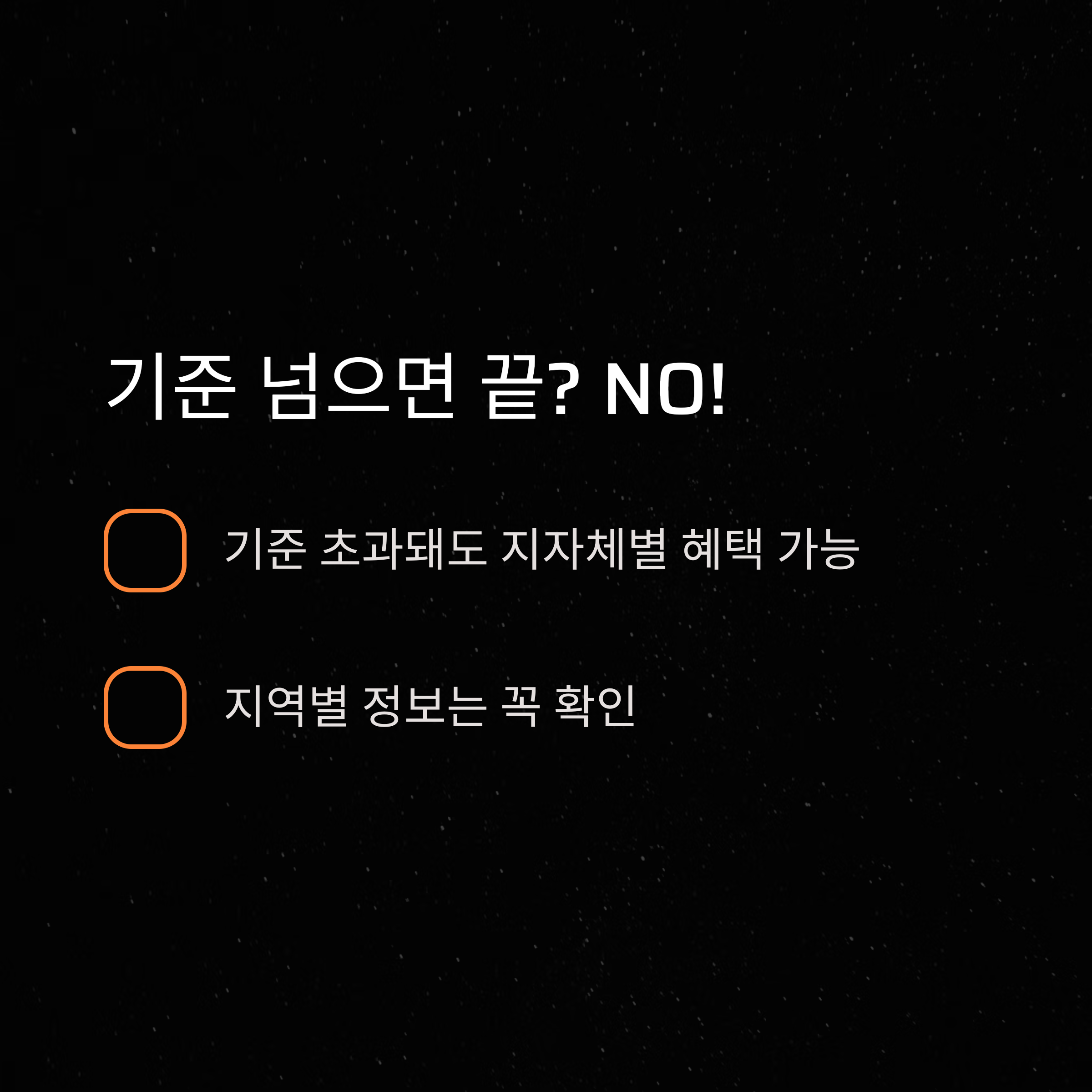 제가 직접 겪은 바로는, 소득 하위 90% 기준에 미달한다고 생각했지만 추가 기준을 통해 지원받은 사례도 있습니다. 따라서 지자체별로 진행되는 다양한 추가 지원 사업들도 꾸준히 확인하는 것이 좋습니다.