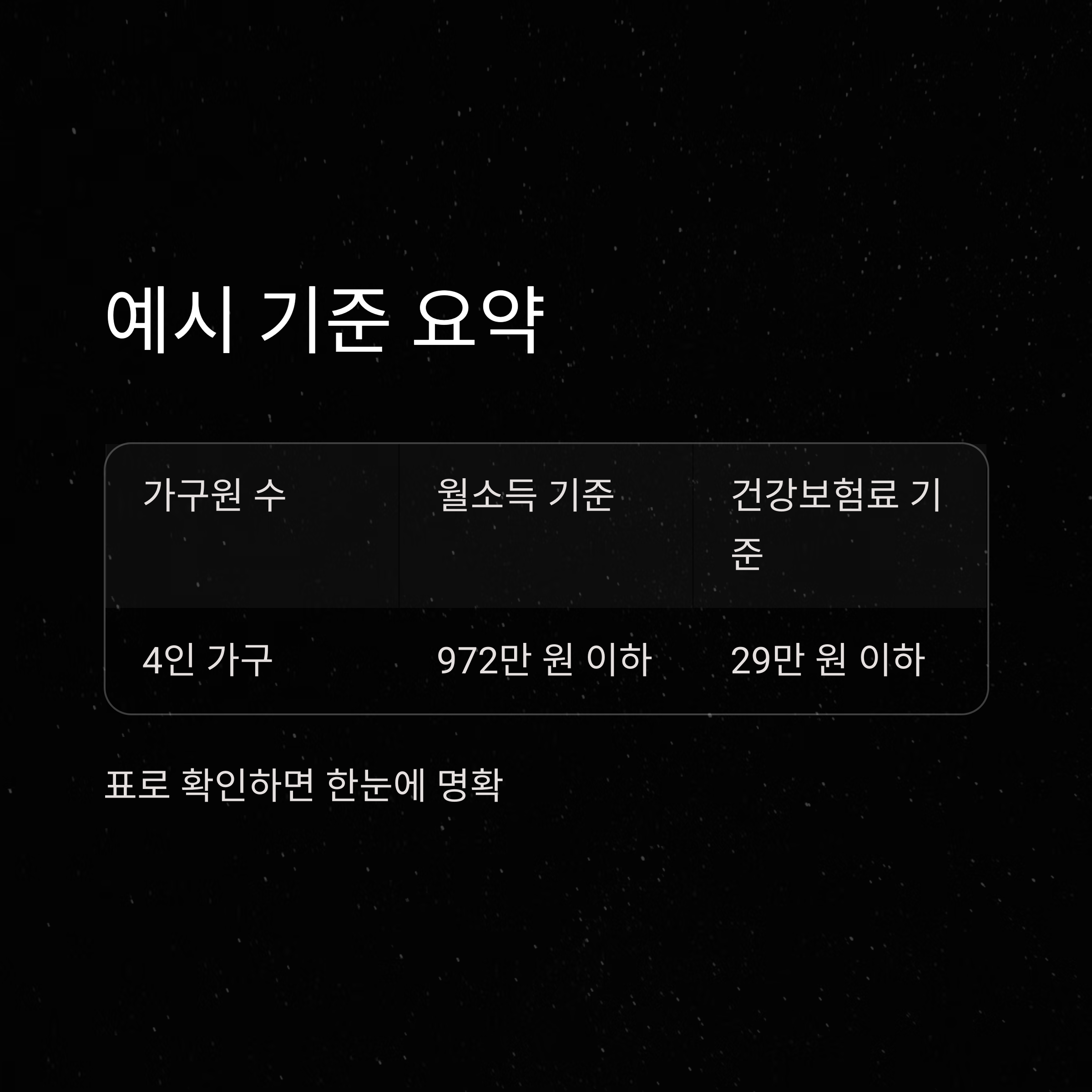 - C씨(40대 맞벌이 가구): 소득 기준이 애매했지만 건강보험료 기준으로 대상이 되어 월 보험료를 크게 줄일 수 있었고, 그 결과 생활비 여유가 생겼다고 합니다.