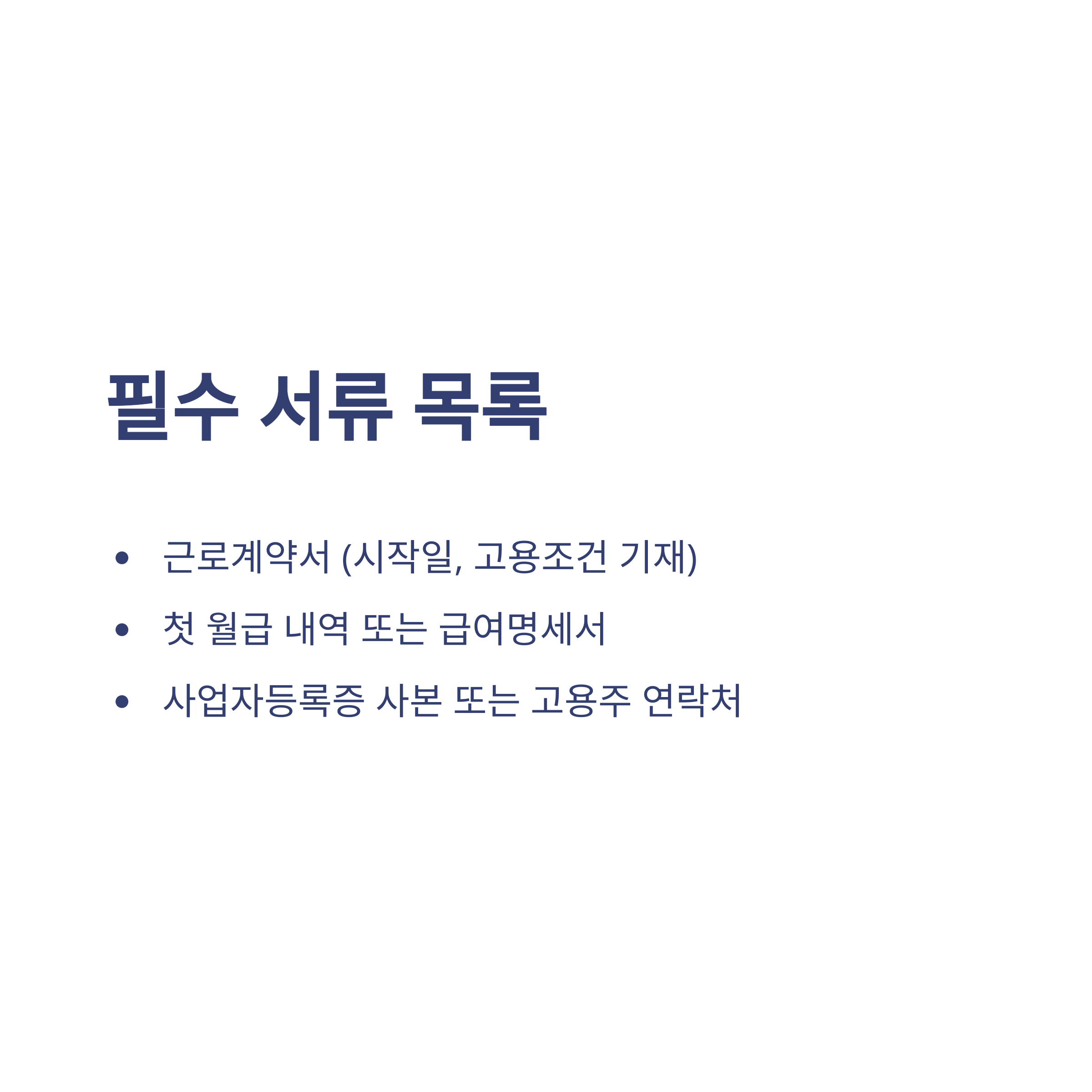 | 필수 서류 | 근로계약서, 급여명세서, 사업자등록증 |