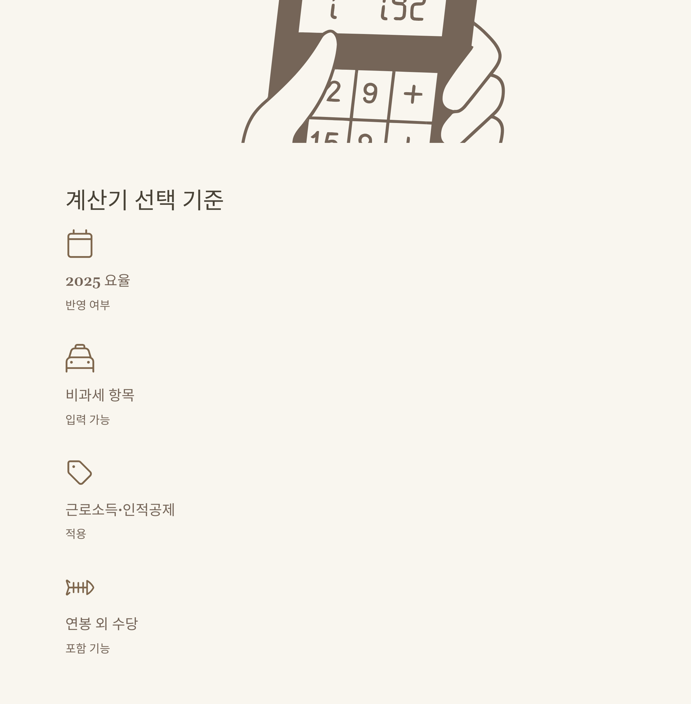 정확한 연봉계산기를 고르는 핵심 기준을 정리해보면 아래와 같습니다: