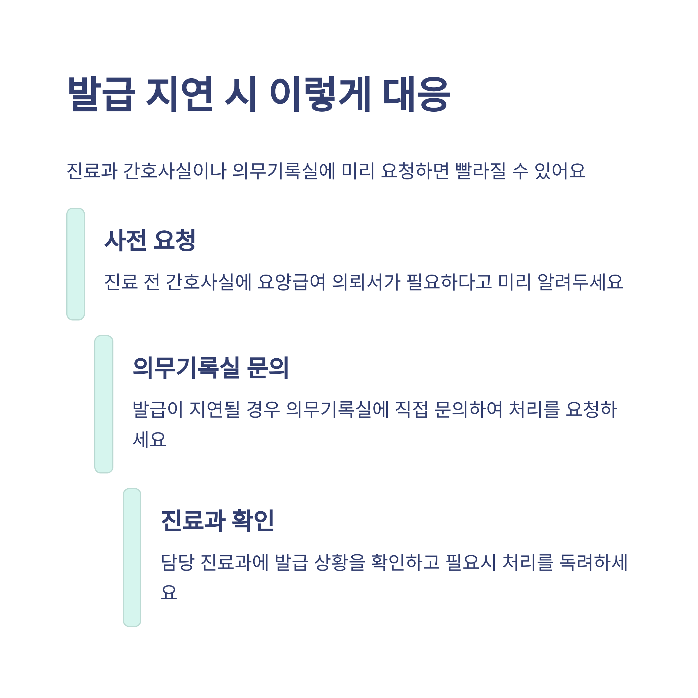 요양급여 의뢰서 발급이 지연되면 대학병원 진료에도 차질이 생기기 쉽습니다. 저는 예전에 의사 부재로 서류 발급이 지연되었고, 결국 진료를 1주일 뒤로 미뤘던 적이 있어요. 이럴 땐 진료과 간호사실 또는 의무기록실에 사전 요청을 해 두면 긴급 처리 가능성도 있습니다. 또한 진료일정이 정해졌다면, 병원에 의뢰서 우선발급 요청을 하는 것도 방법입니다. 병원 내 고객센터나 콜센터를 통해 담당자 연락처를 미리 확보해 두면 좋습니다.