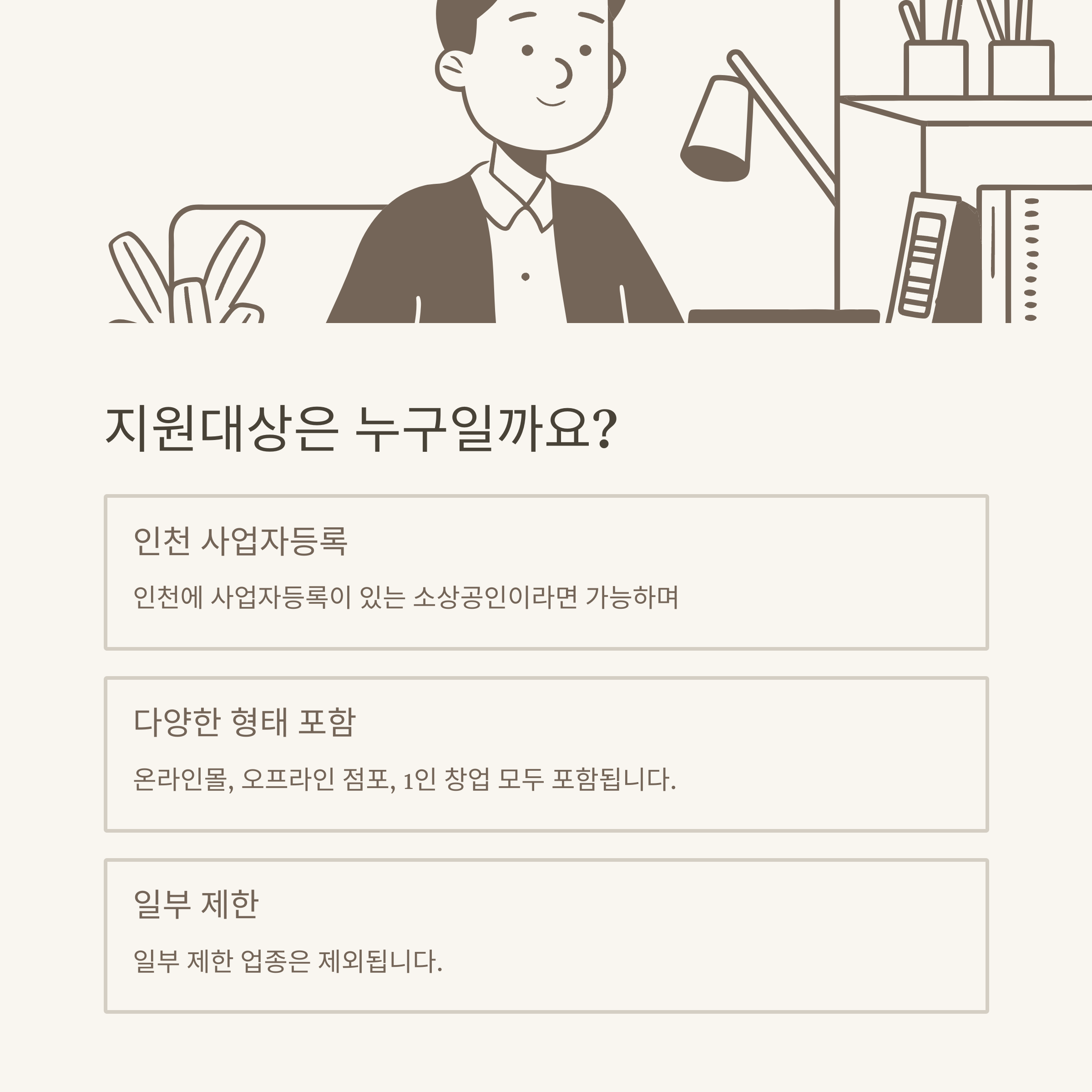 | 지원대상 | 인천시 사업자등록 소상공인 | 공식사업 안내 |