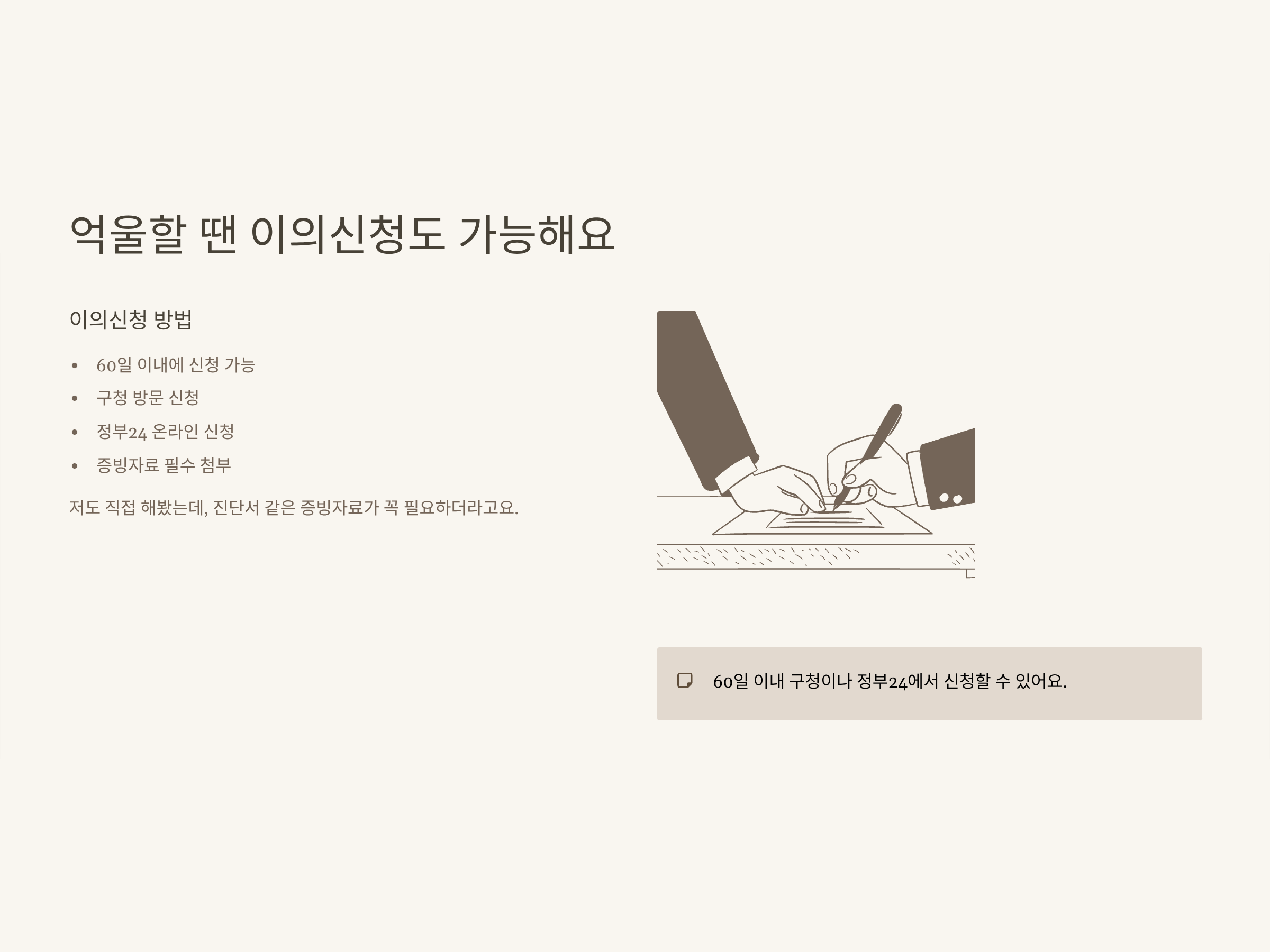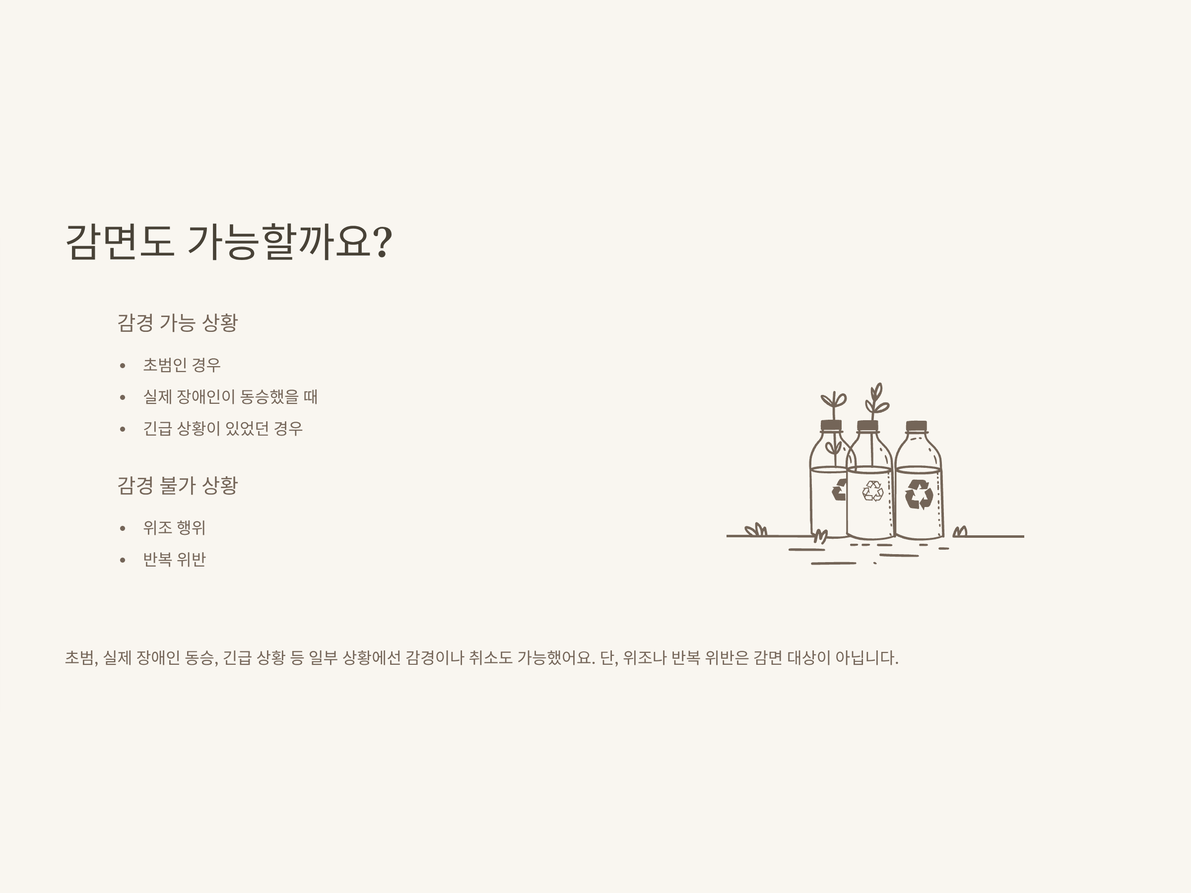 | 예외 가능 | 의료 확인이 된 일시적 장애(사고, 수술 등) |