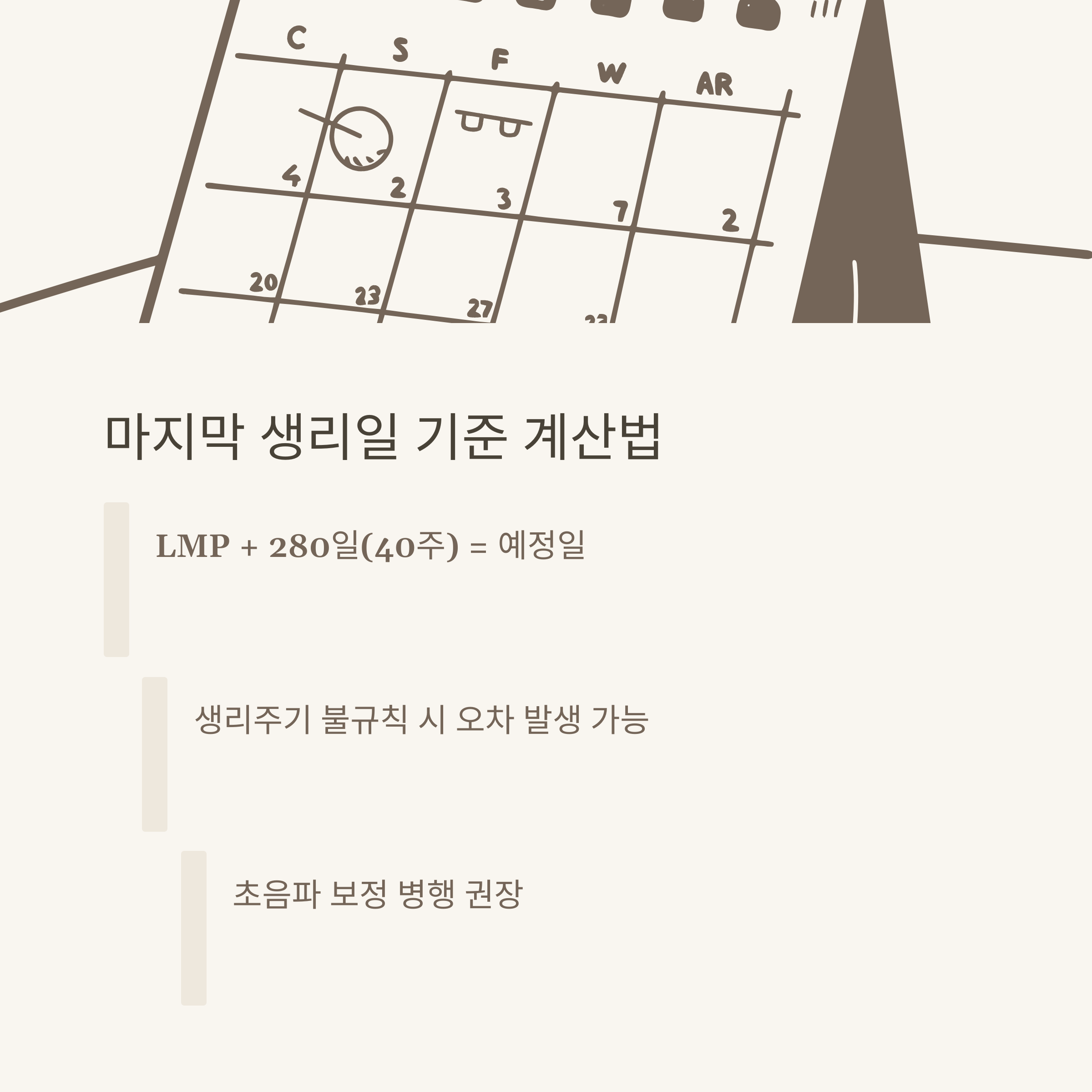 임신날짜계산기를 사용할 때 가장 많이 쓰는 방식이 바로 마지막 생리일(LMP: Last Menstrual Period) 기준입니다. 저도 임신 확인 직후 산부인과에서 “마지막 생리 시작일이 언제인가요?”라는 질문을 가장 먼저 받았고, 그 날짜를 기준으로 주수와 예정일을 바로 안내받았어요.