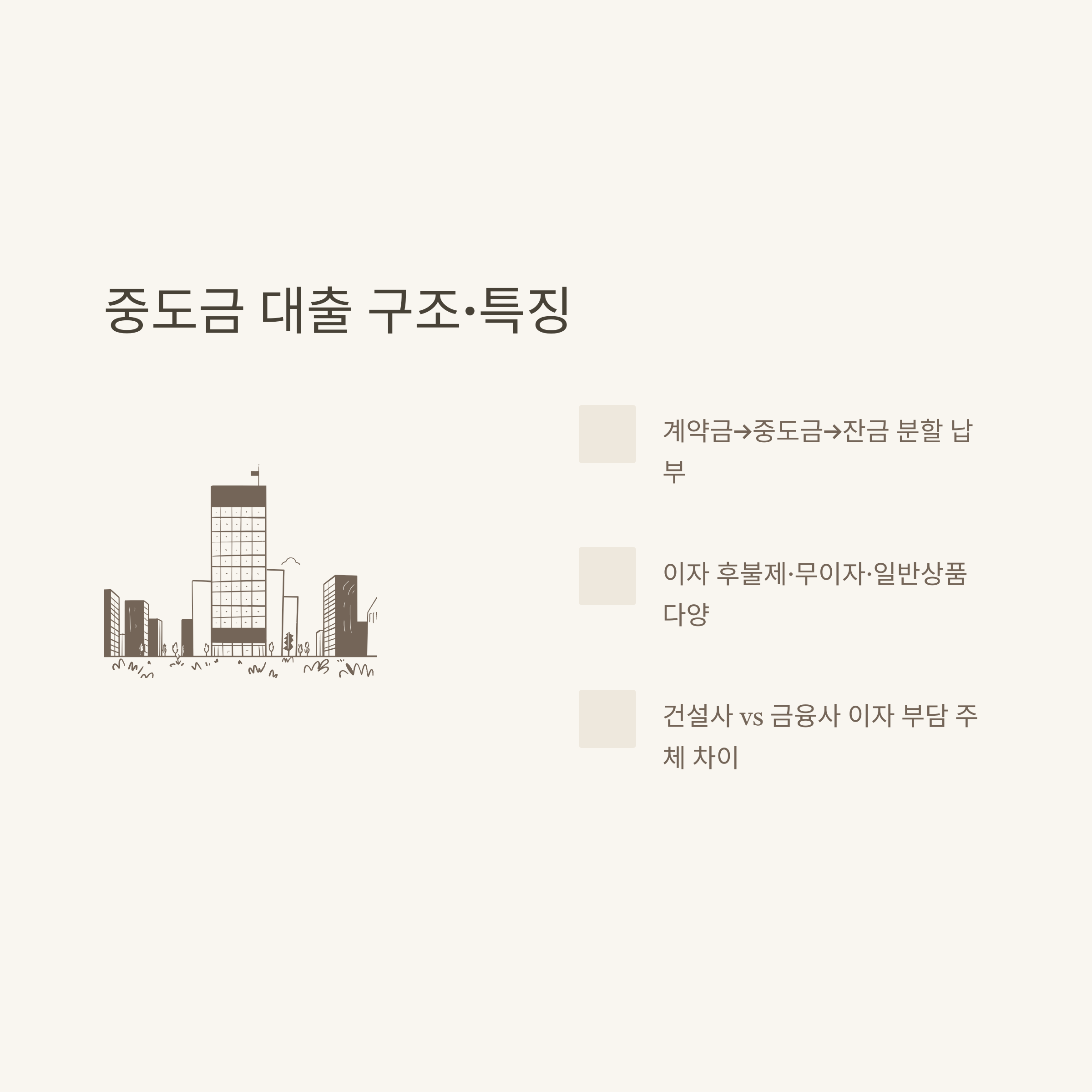 - 이자 후불제: 입주시 일괄 상환, 이자 총액 부담