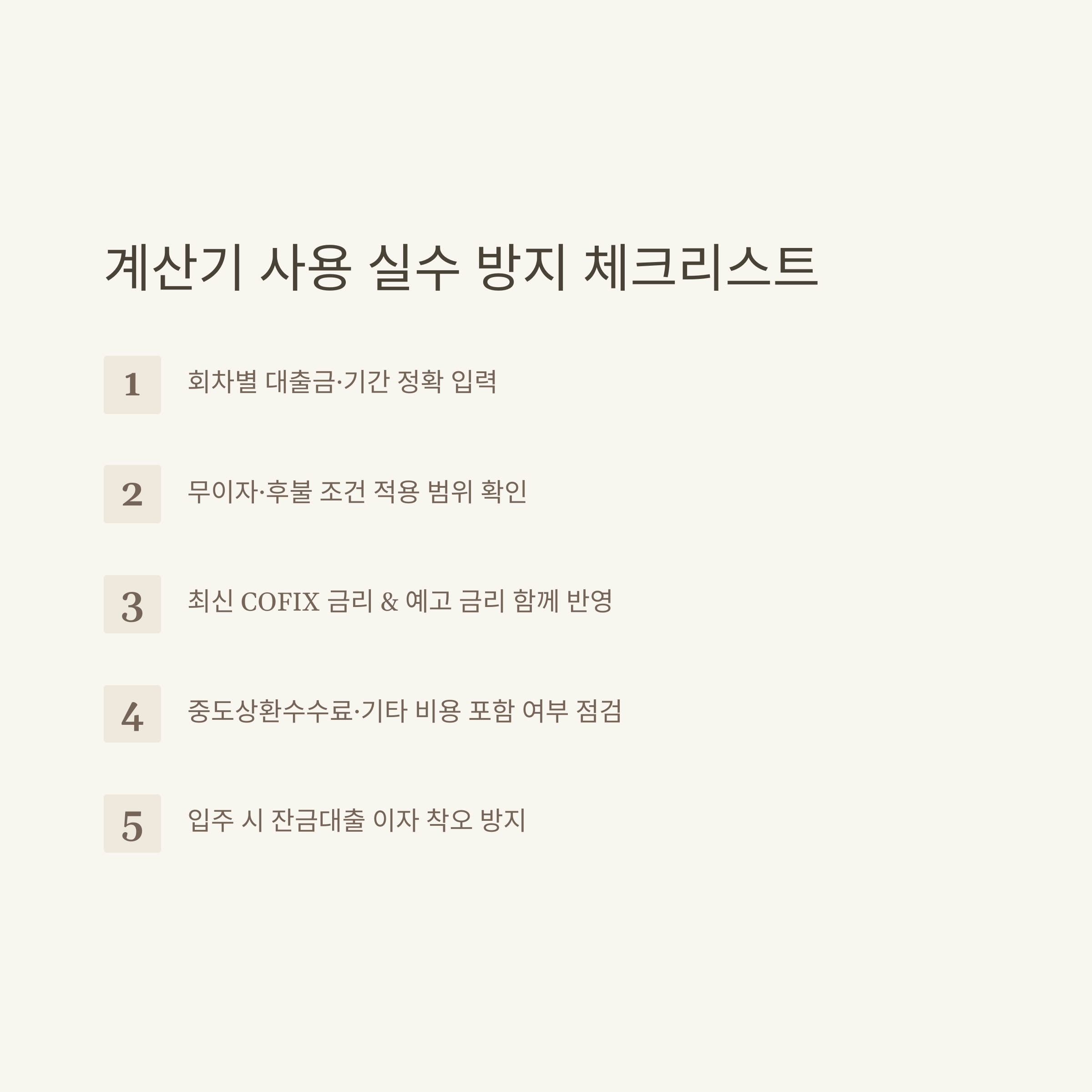 처음에 중도금 대출 이자 계산기를 쓸 때 저도 몇 가지 실수로 불필요한 걱정이나 비용을 치른 적이 많아요. 아래 체크리스트만 챙겨도 큰 실수는 거의 방지할 수 있습니다.