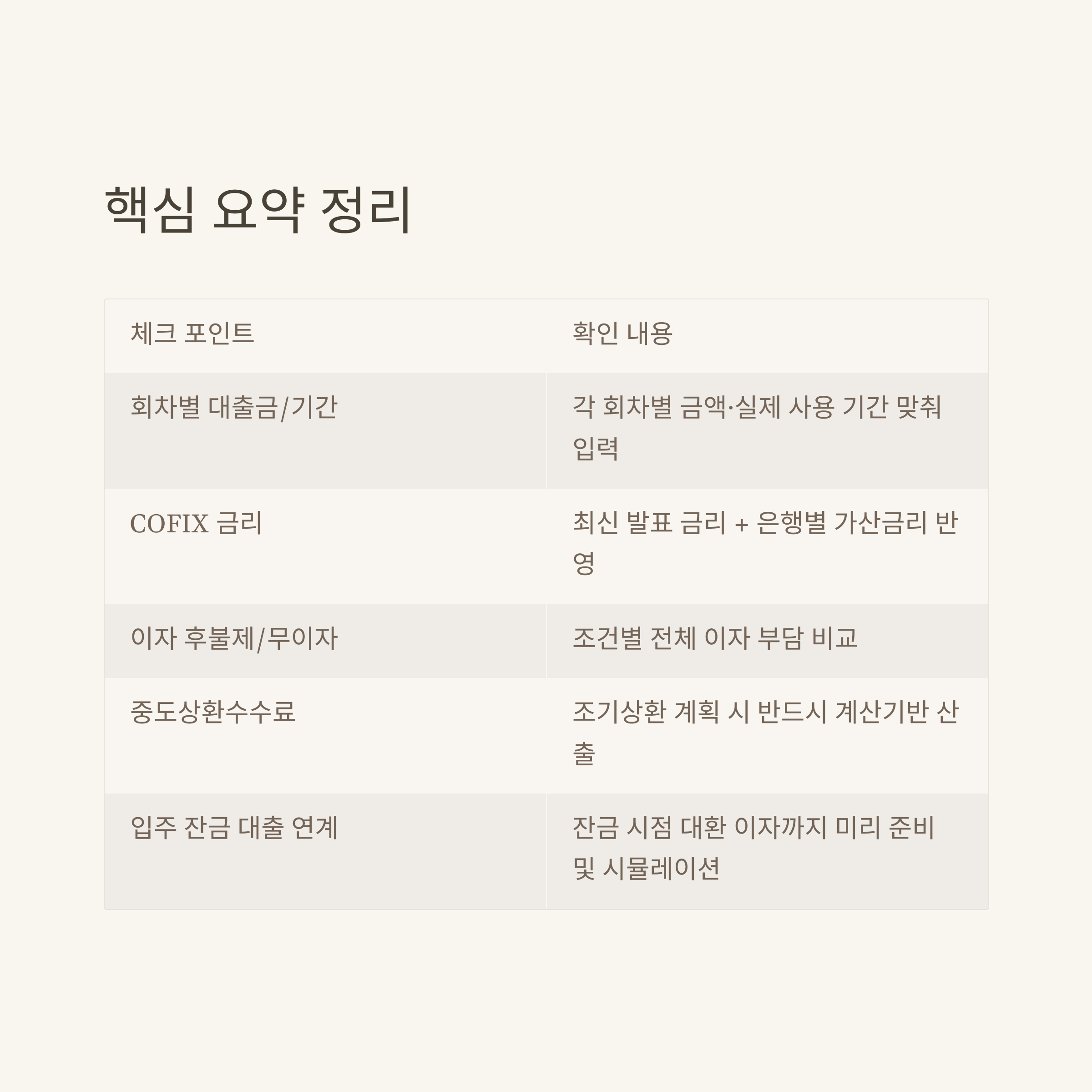 | 중도상환수수료 | 조기상환 계획 시 반드시 반영 |