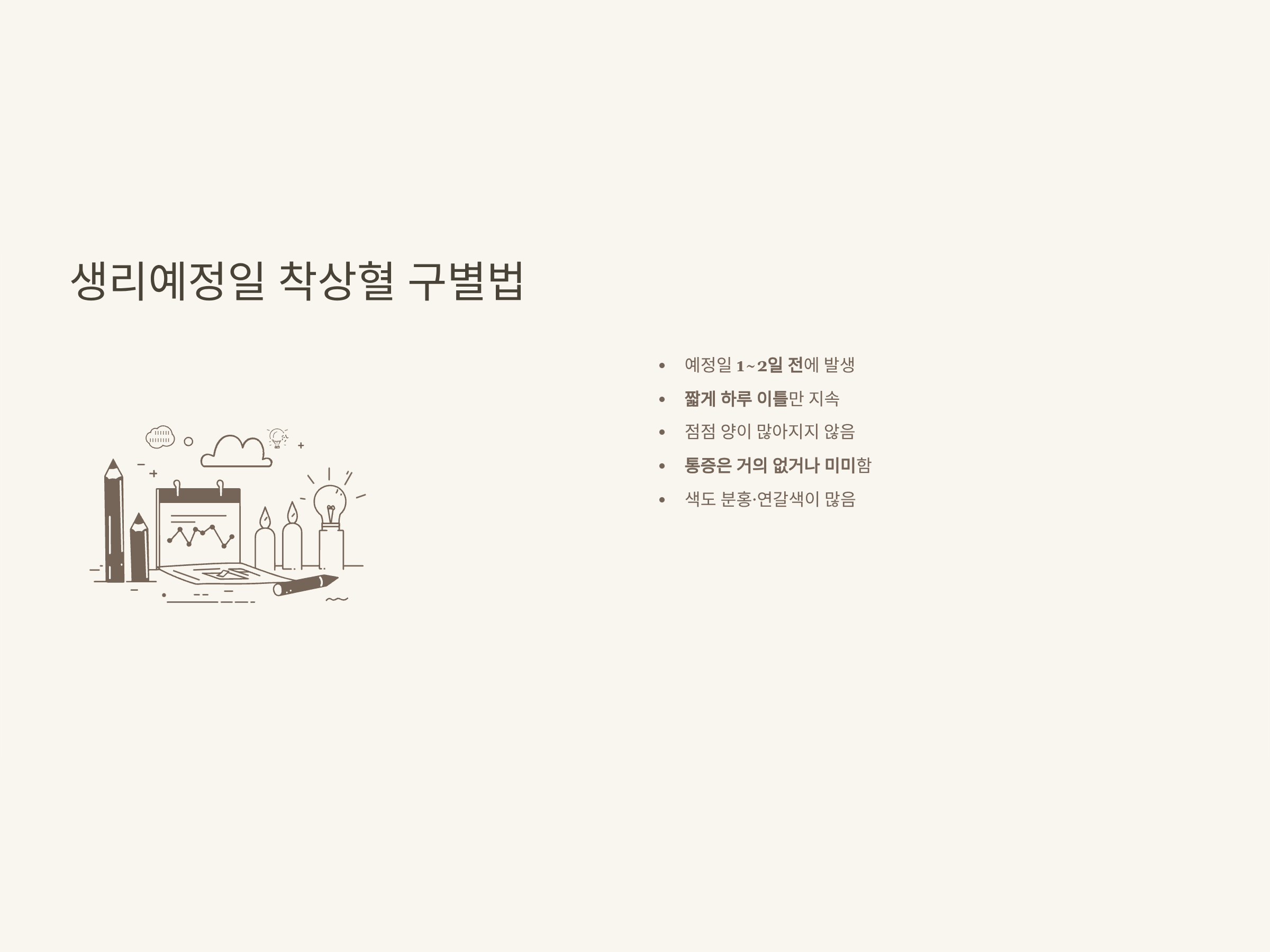 ‘생리예정일 착상혈’은 임신을 기다리던 분들이 가장 혼란스러운 시기입니다. 저도 임신 준비 초기에 생리예정일 전후로 약간의 갈색 출혈이 있었는데, 그때 정말 착상혈인지, 단순 생리전 부정출혈인지 구별이 안 돼서 혼자 고민했던 기억이 있어요.