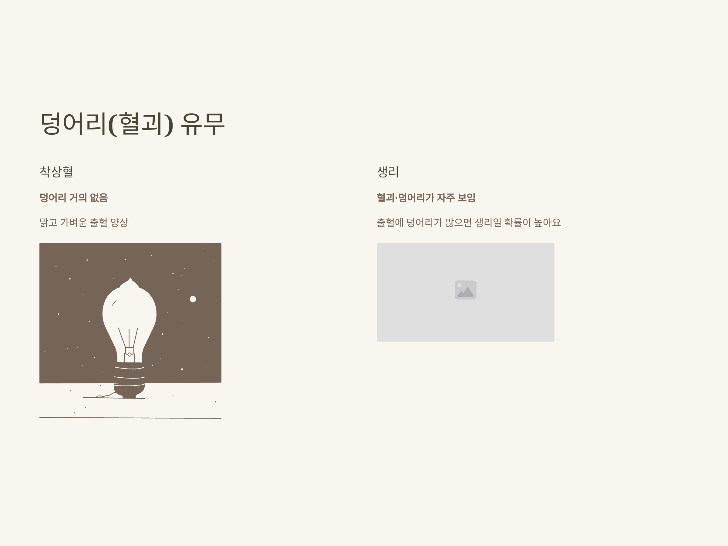 | 덩어리(혈괴) | 없음 | 있음(빈번) | 거의 없음 |
