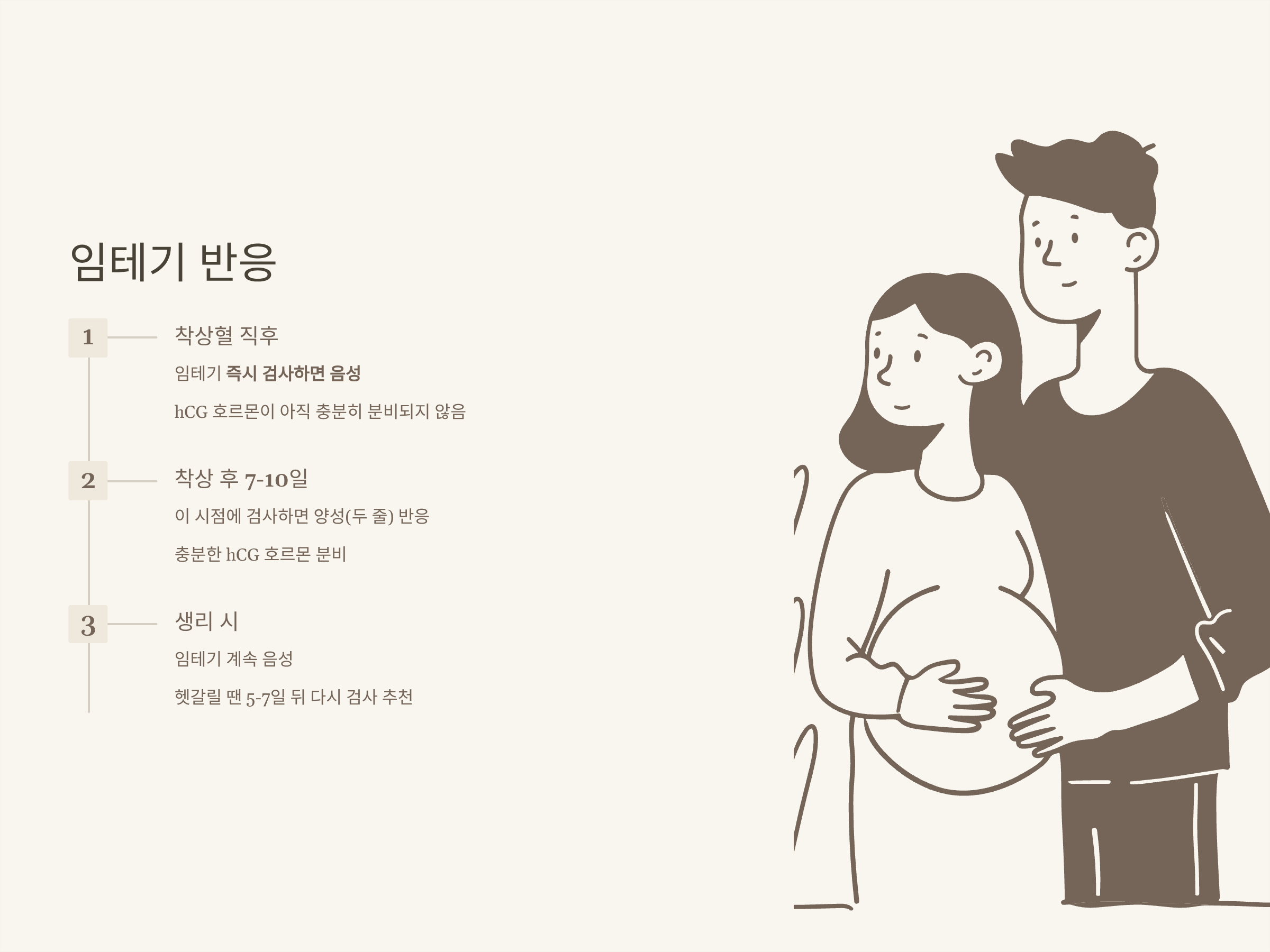 - 생리라면 계속 음성, 착상혈이면 며칠 후 양성 가능