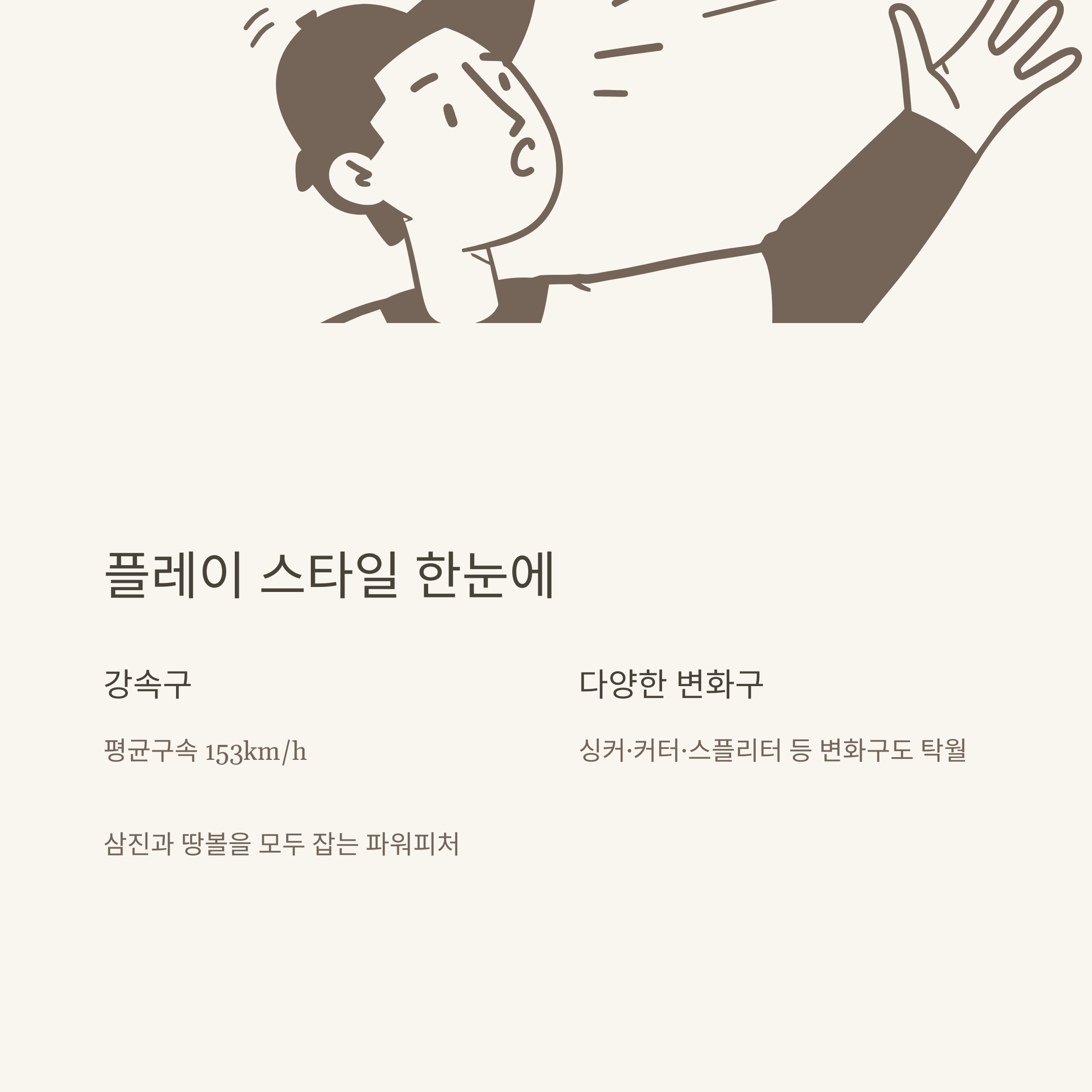 | 주요 구종 | 포심, 싱커, 커터, 스플리터, 커브, 체인지업 등 |
