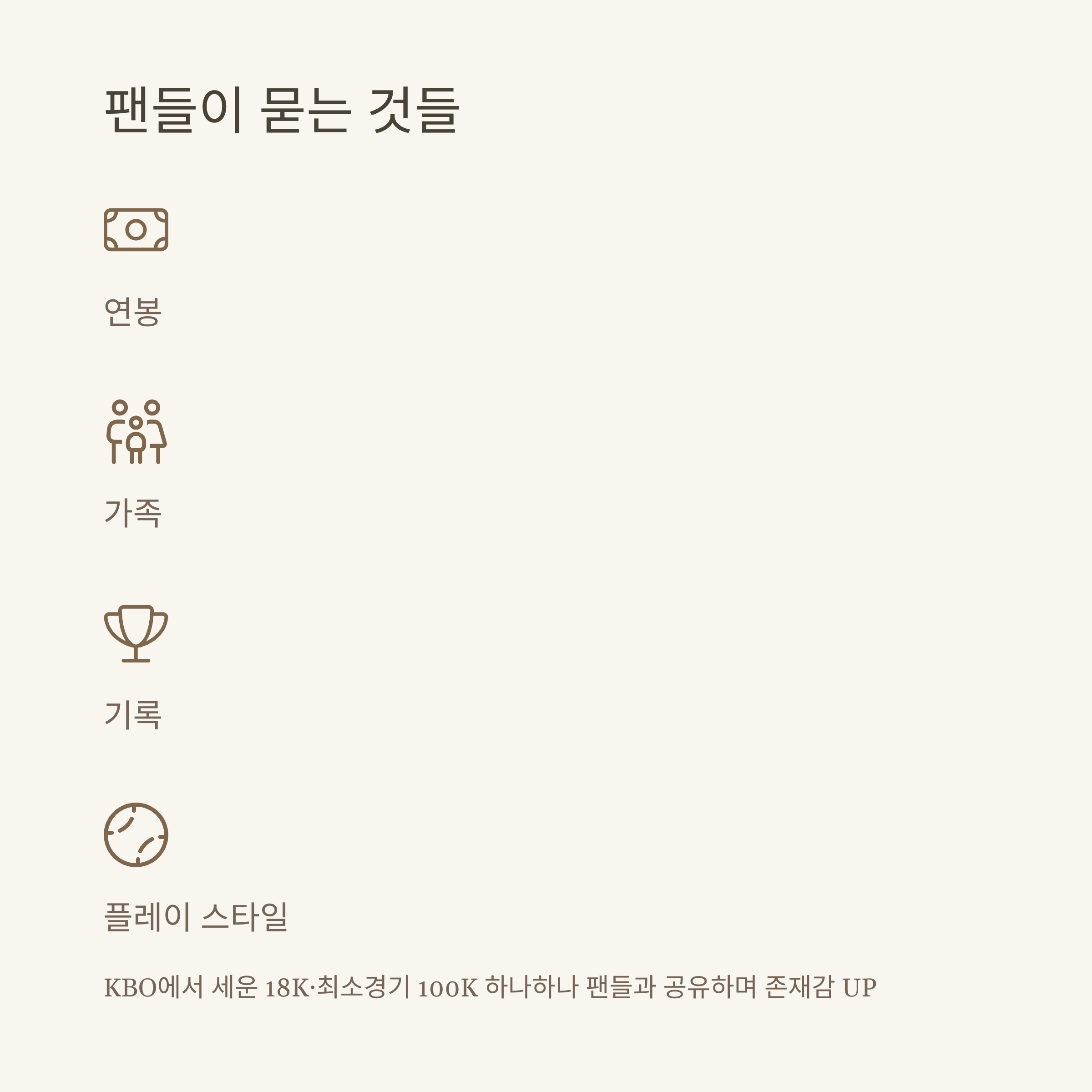 개인사를 보면 정말 긍정적이고 유쾌한 사람이라는 게 느껴지는데, 실제로 팬들과 소통도 활발해서 한화 팬들이 더 애정을 갖고 있는 것 같습니다.
