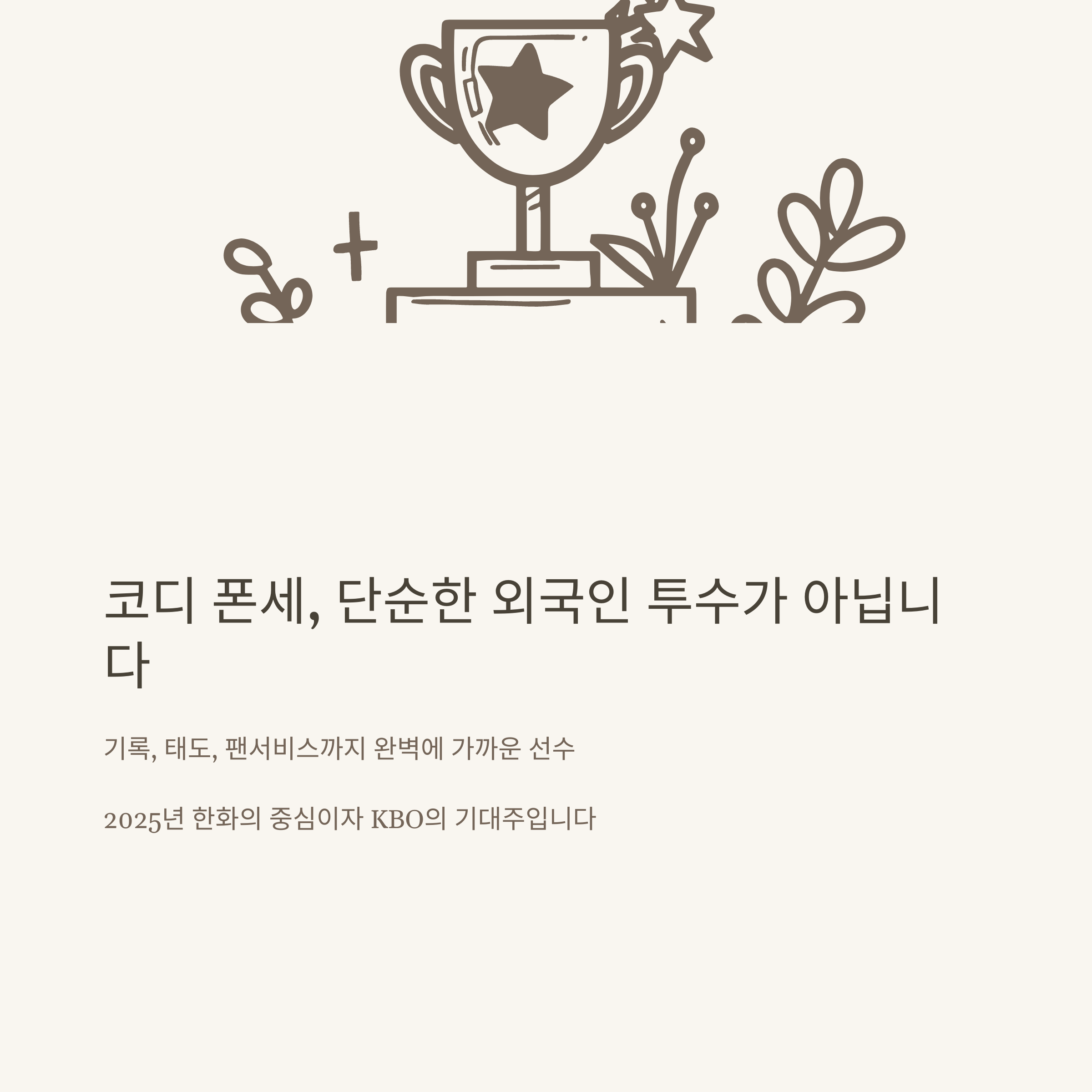 코디 폰세는 한화 이글스의 새로운 에이스로, MLB와 NPB를 거쳐 KBO에서 역사적인 기록을 세운 우완 투수입니다. 연봉, 가족, 일본 시절 등 실제 팬의 시선으로 상세히 정리했습니다.