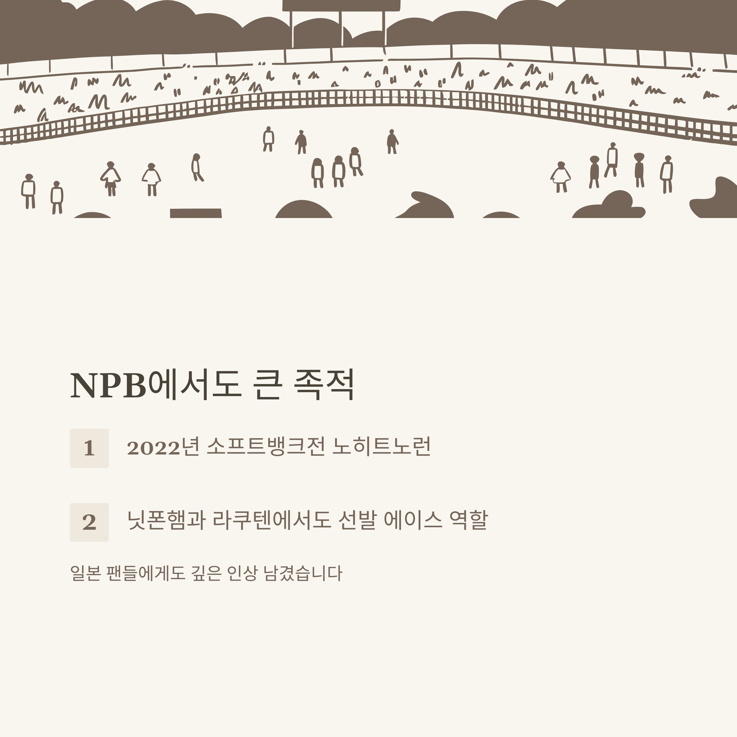 | 주요 기록 | NPB 노히트노런(2022), KBO 18탈삼진(2025) |