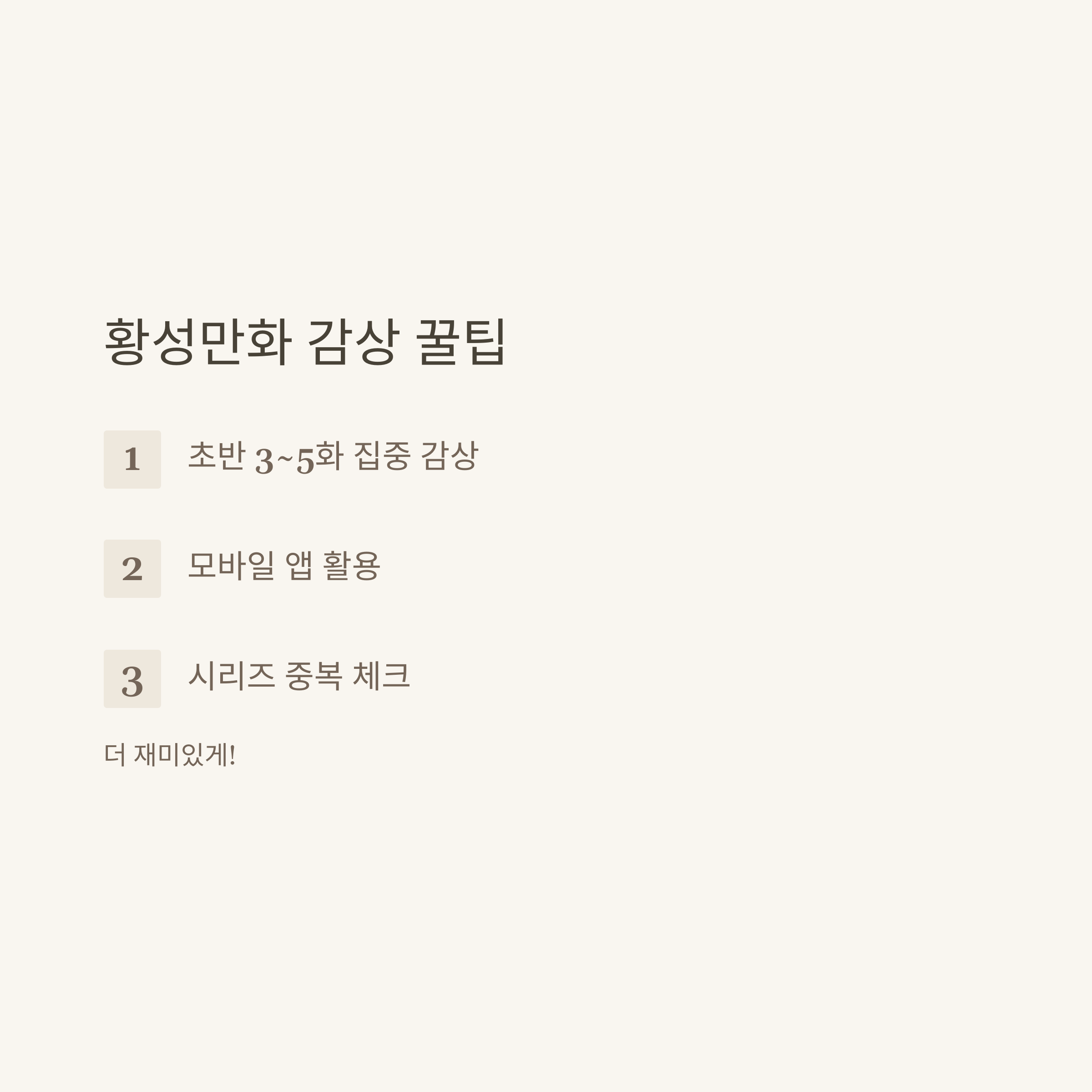실제로 황성만화를 오래 보면서 체득한 감상 꿀팁도 공유해봅니다. 긴 시리즈일수록 초반 몰입도가 중요한데, 저는 매번 첫 3~5화까지 집중해서 보면 훨씬 빨리 세계관에 빠져들 수 있었습니다.