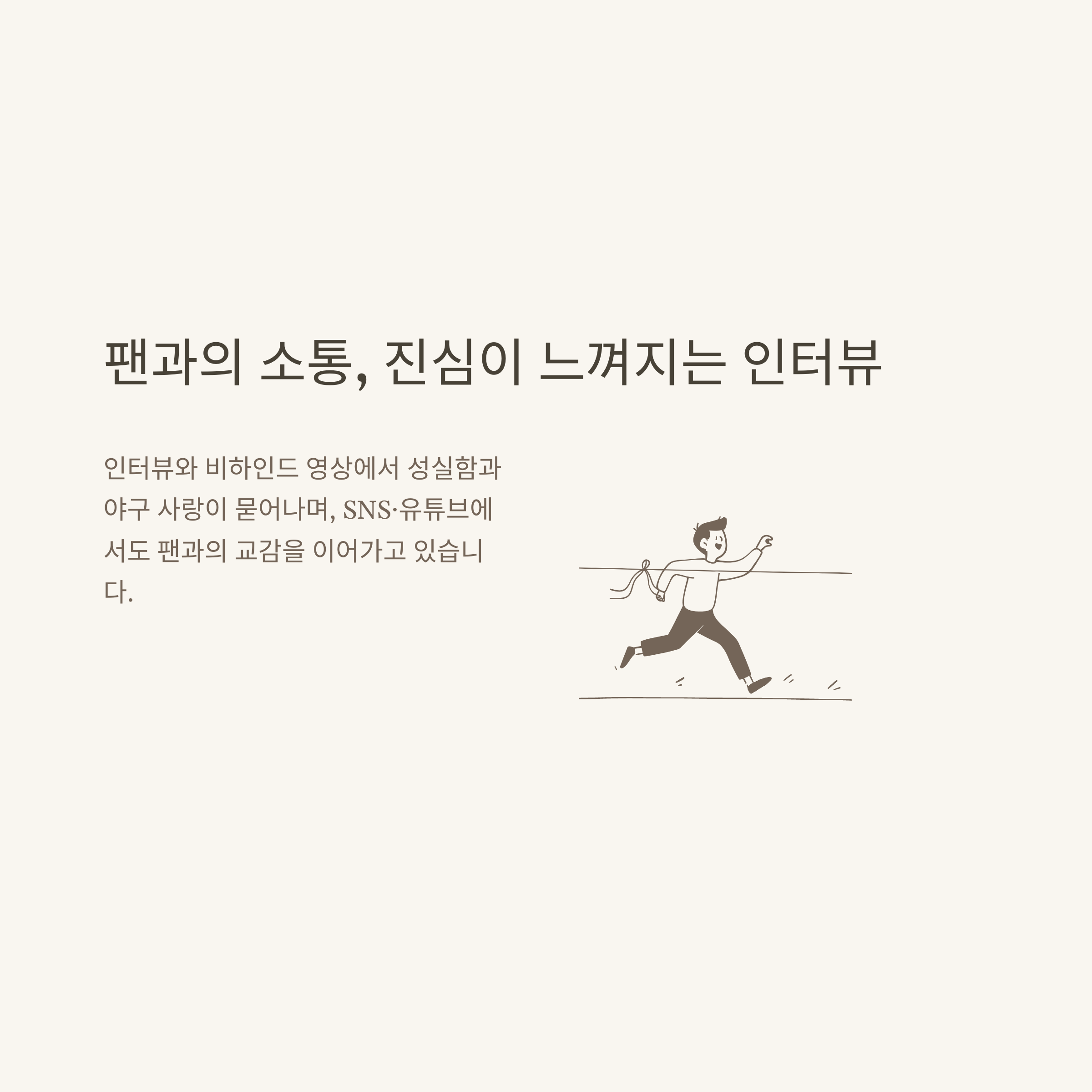 특히 “어릴 적 꿈을 이루는 과정”과 “경기 중 긴장 극복법” 등에 관한 인터뷰는 팬들 사이에서 화제가 됐습니다. SNS와 유튜브 채널에서도 비하인드 스토리가 자주 올라와 팬들 사이에서 긍정적인 반응을 얻고 있어요.