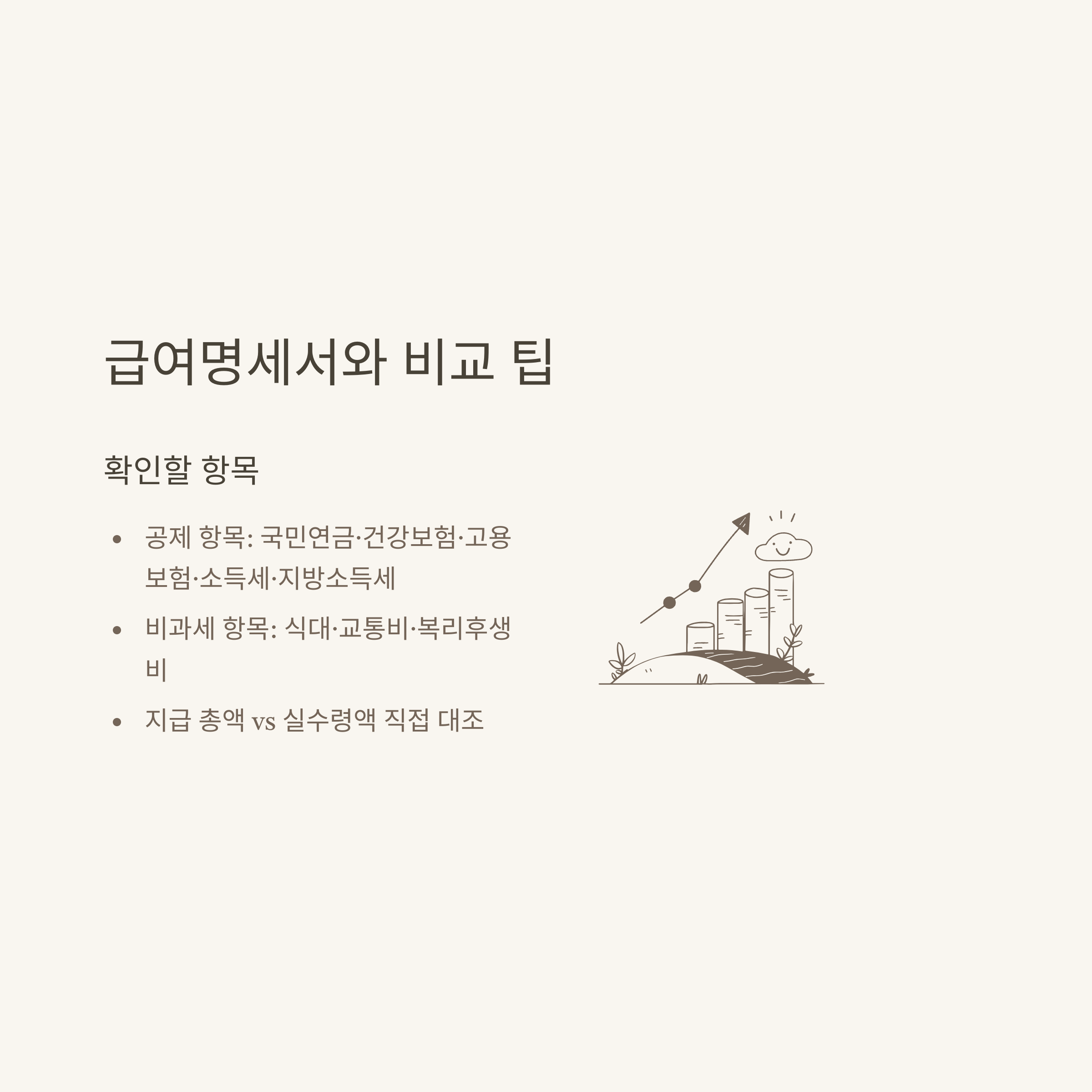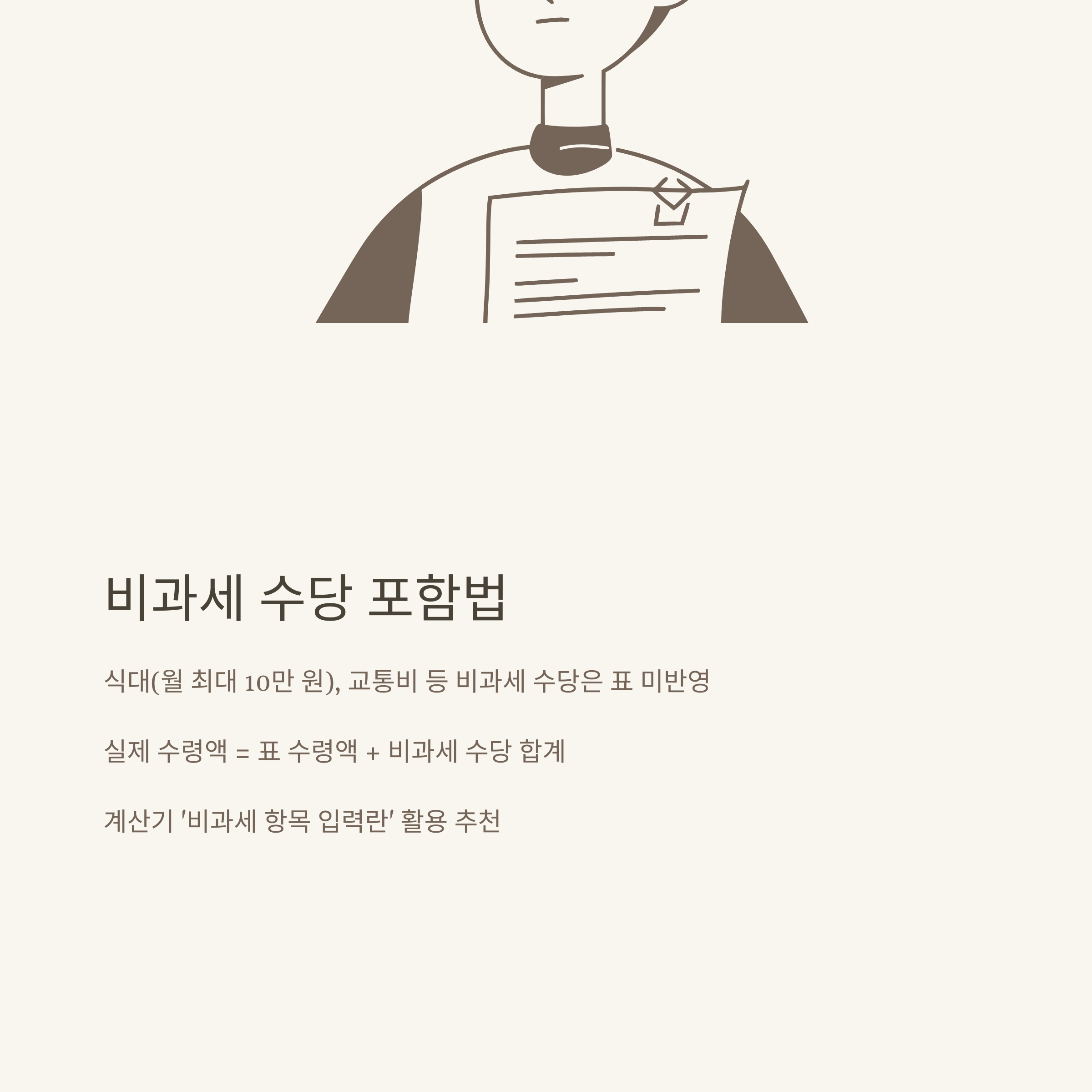 | 3. 비과세 항목 주의 | 실제 수령액은 비과세 여부에 따라 달라질 수 있음 |