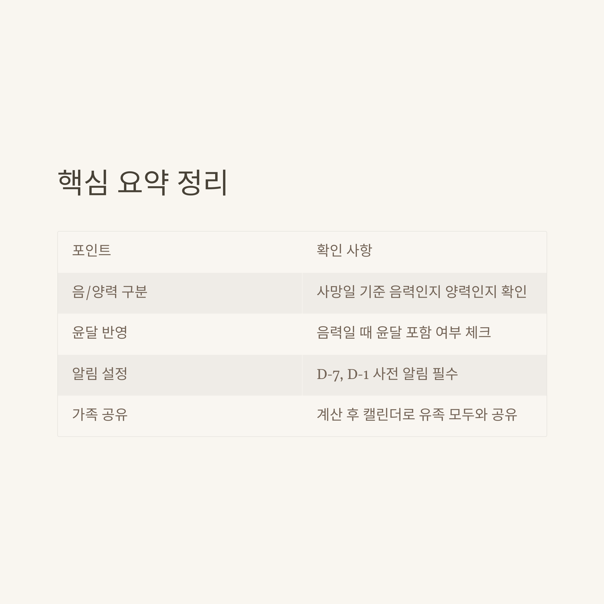 - 음력/양력 여부 – 혼용 시 날짜 혼동 주의