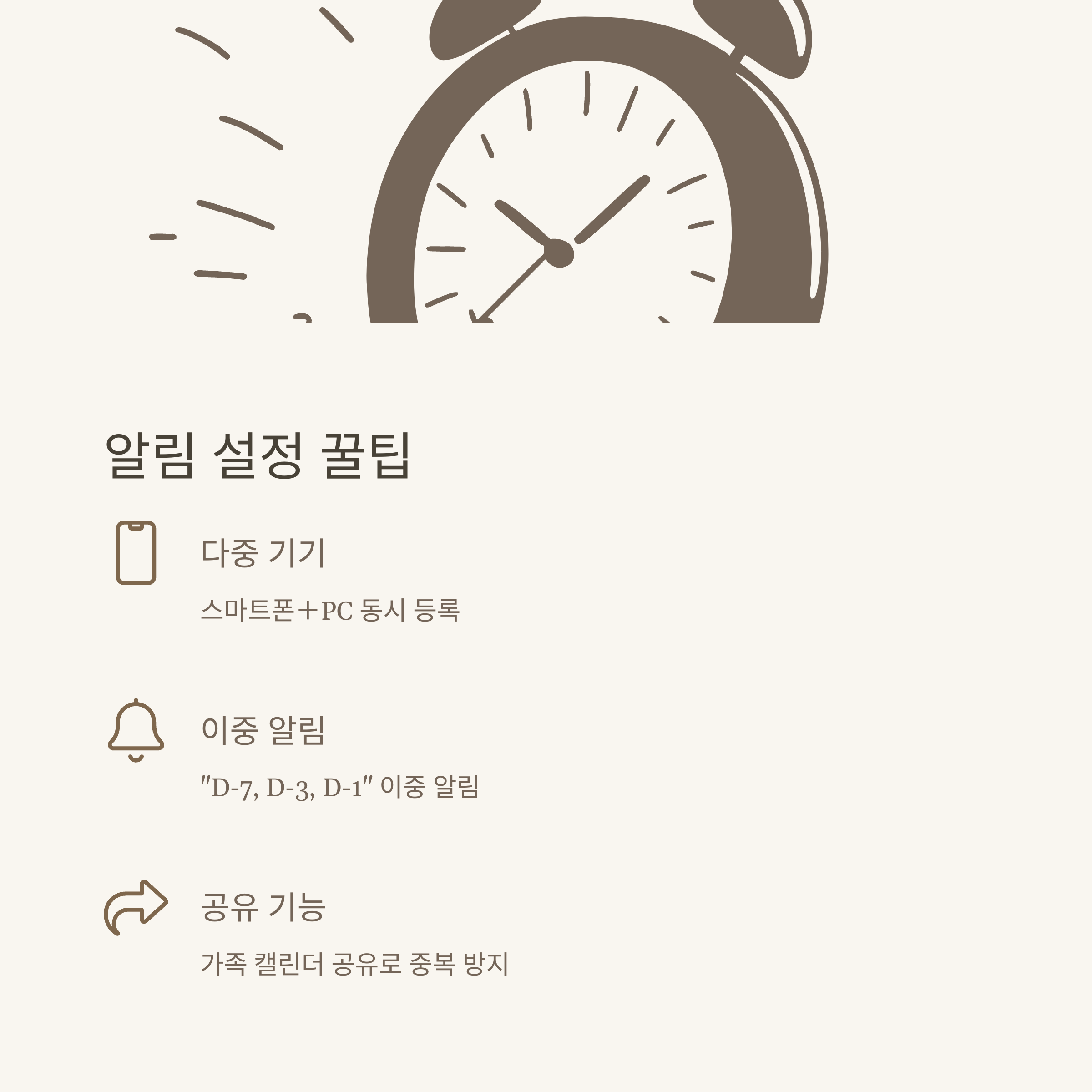 - ‘D‑7’ 또는 ‘D‑3’ 추가 알림으로 준비 기간 확보